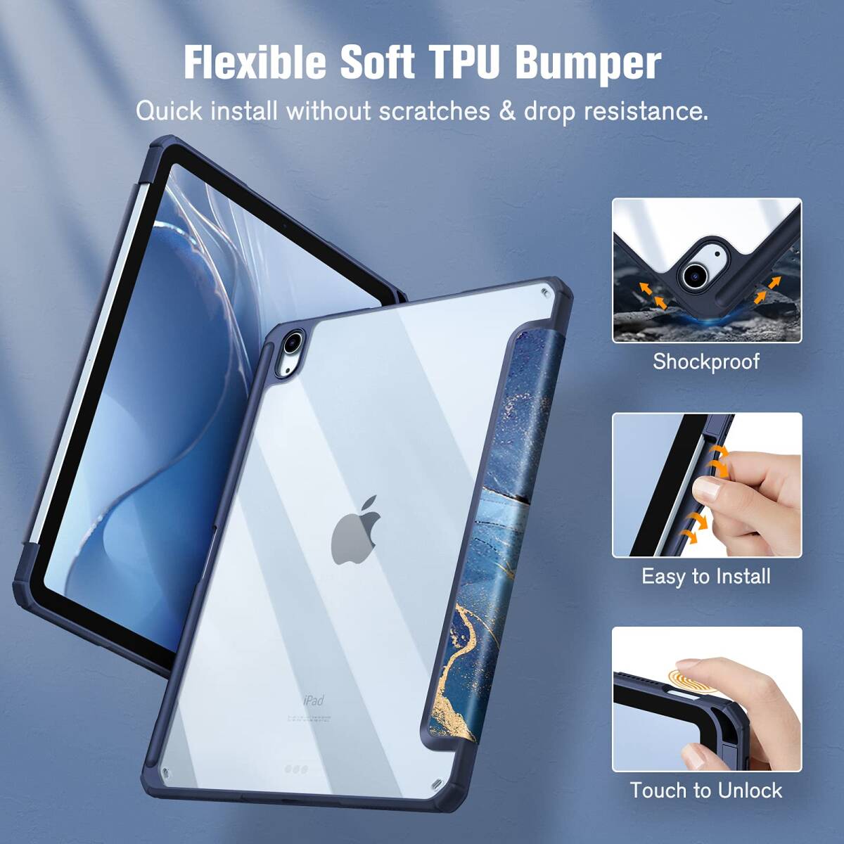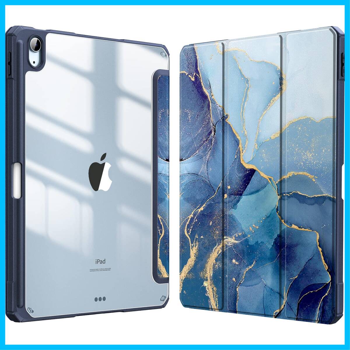 Fintie iPad Air 11インチ ケース M3 (2025 第7世代) / M2 (2024 第6世代) / Air 5/4 ケース 2022/2020 10.9 インチ 透明バックカバー Apple Pencil 収納可能 ワイヤレス充電対応 三つ折スタンド スリープ機能 軽量 薄型 傷つけ防止 PU合成レザー TPU(柄 X マーブルブルー)