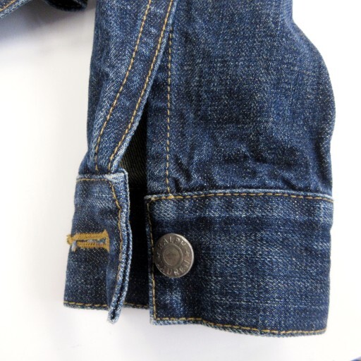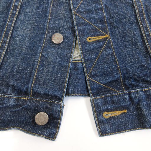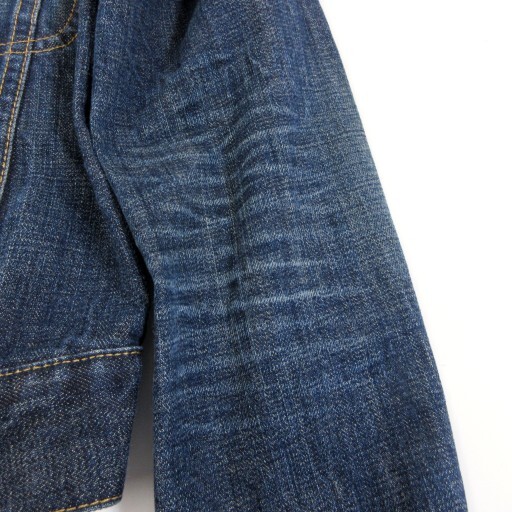 【状態】襟や袖、縫い目部分に素材特有の若干の擦れがありますが、その他に目立ったダメージはなく、問題なくご使用いただける商品です。(どこまでが加工かはわかりかねます。予めご了承ください。) ※あくまでも中古品ですので掲載写真や記載内容をご確認いただき、ご理解の上ご購入ください。