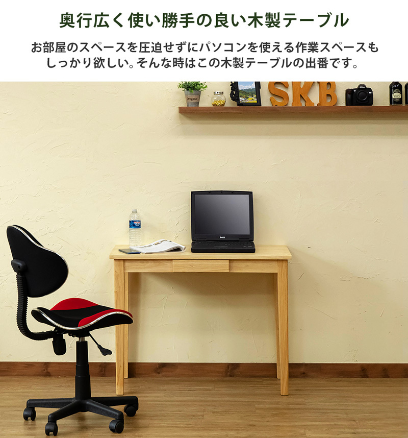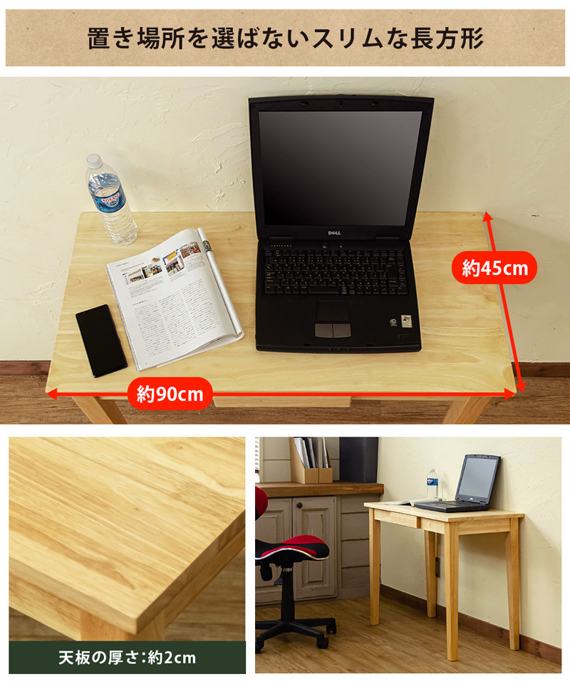 | サイズ | (W)幅90cm×(D)奥行45cm×(H)高71cm 天板厚:約20mm 引出し内寸:W23.5×D33×H5.5cm |