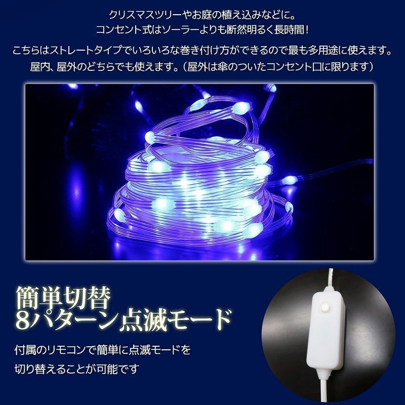 カラーは美しいブルー。 こちらはストレートタイプでいろいろな巻き付け方ができるので最も多用途に使えます。 屋内、屋外のどちらでも使えます。(屋外は傘のついたコンセント口に限ります) LEDを使用してますので、消費電力が抑えられ、エコです。 今、お庭の柵や植え込みクリスマスツリーのライトが寂しいと感じるならこちらのイルミネーションでゴージャスにグレードアップが可能です! 点灯パターンの詳細は動画でご覧くださいませ。 動画はこちらからご覧くださいませ。 ↓↓↓↓↓↓↓↓↓↓↓↓↓↓↓↓↓↓↓↓↓↓↓↓↓↓↓ こちらをクリック