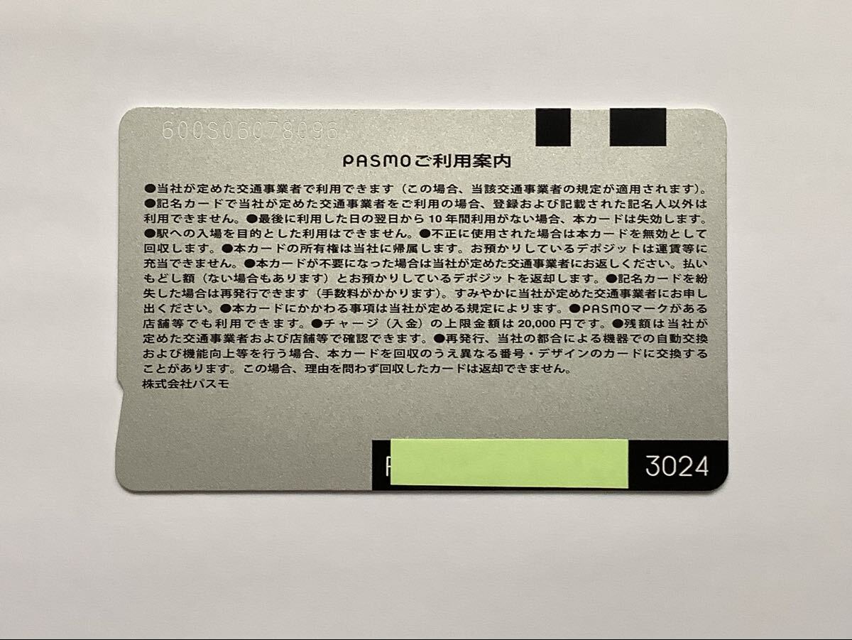 【商品】pasmo パスモ 未使用カード 無記名 使用可能 モバイル登録なし カードチャージ残高500円