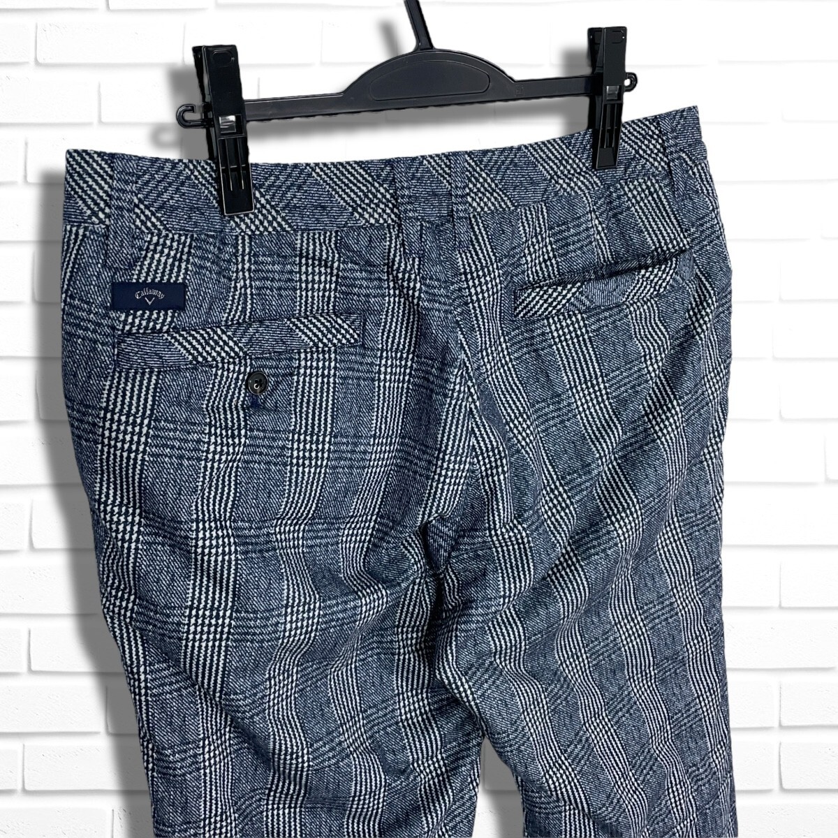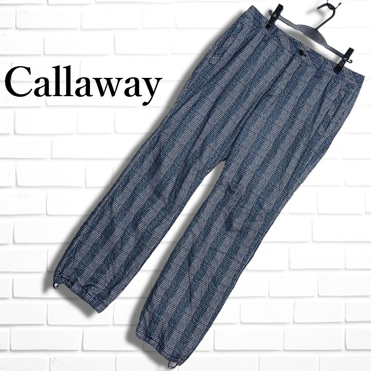 ◆美品◆ Callaway キャロウェイ ゴルフ ウェア 中綿 グレンチェック 防寒 パンツ メンズ 白 × 紺 メンズ 3L 2XL ◆きいサイズ 0315K◇