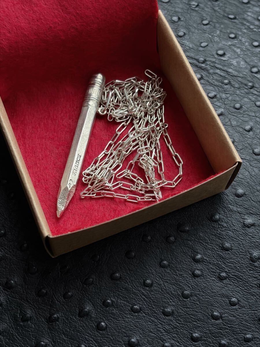 ペンシルの大きさもちょうど良く、チェーンも長めなのと、チェーンの止め位置は調整出来るので、高さを変えたりするコーディネートのバランスが取りやすいです。