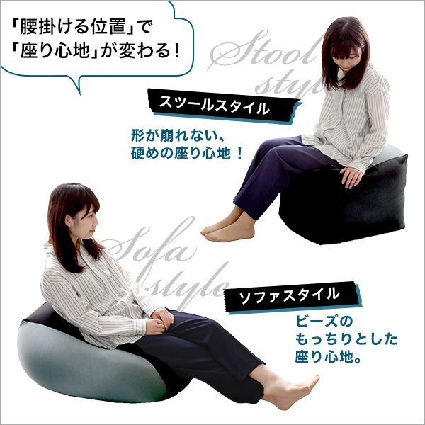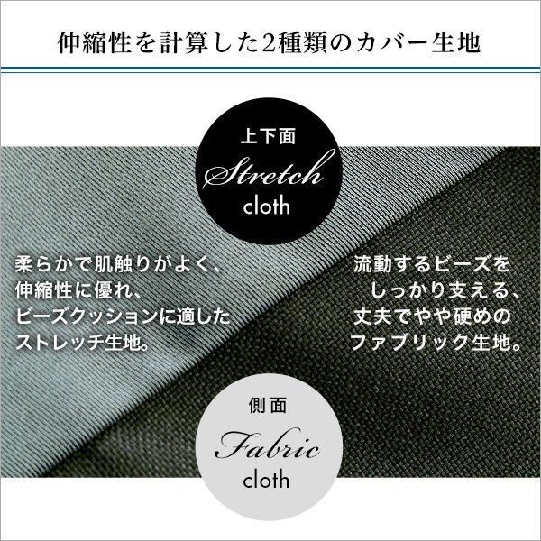 | 【ポイント】 2wayで使える、洗えるカバー付きビーズクッションです。 ヘタリに強い新素材高弾性ウレタンフォームを配合。 高品質な日本製で、2種類のカバー生地が伸縮性を調節します。 |