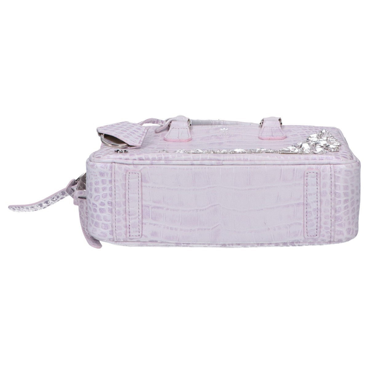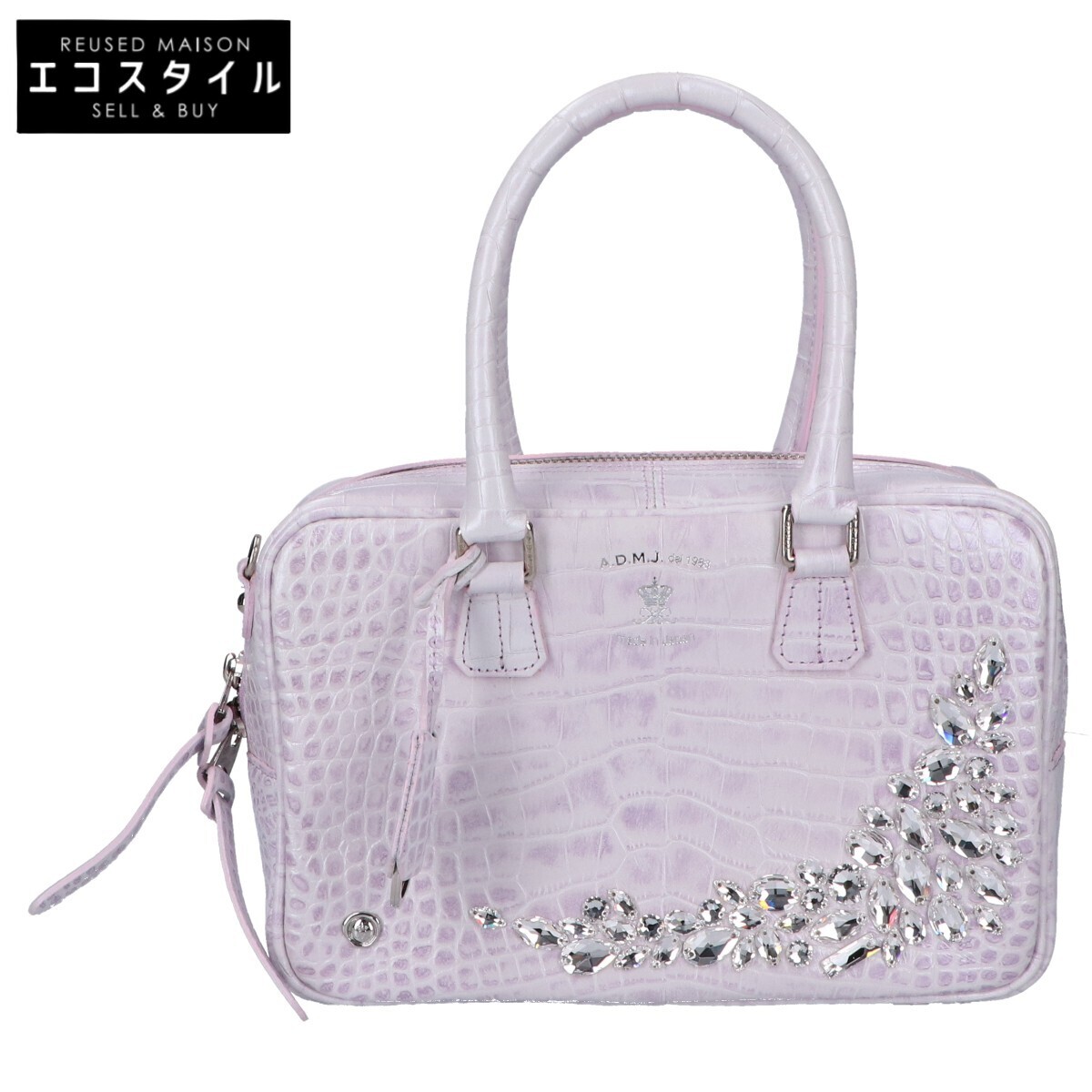 美品 A.D.M.J. Accessoires De Mademoiselle ADMJ クロコ型押し クリスタルソーイング 2WAY ボストンバッグ ラベンダー レディース