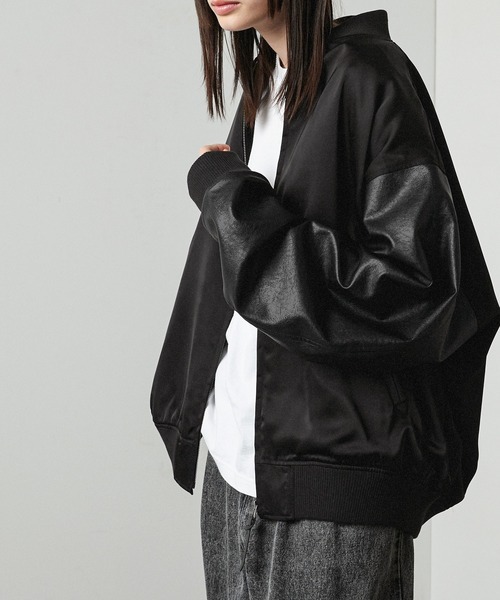 参考商品名:【Alfred Alex】”huge sizing” サテン×フェイクレザーコンビ オーバーサイズジップスカジャン