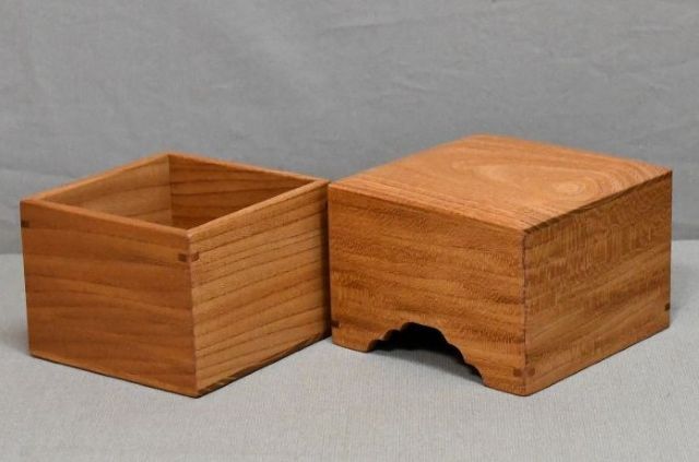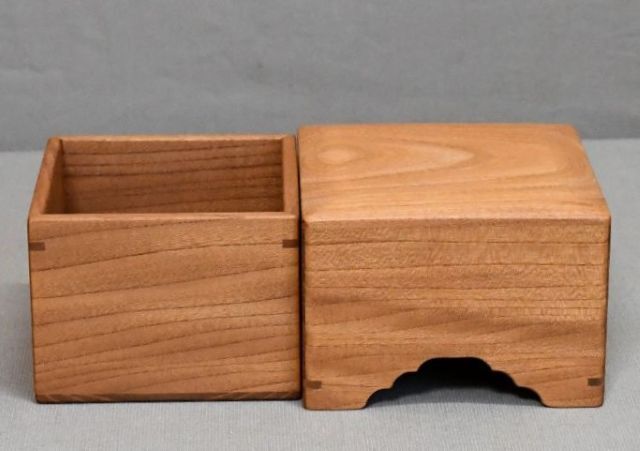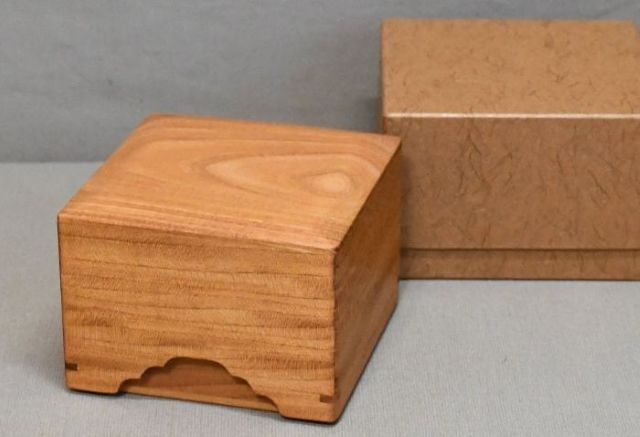 | 欅中杢の駒箱 四面落 新品. 化粧箱付き。 | ||
