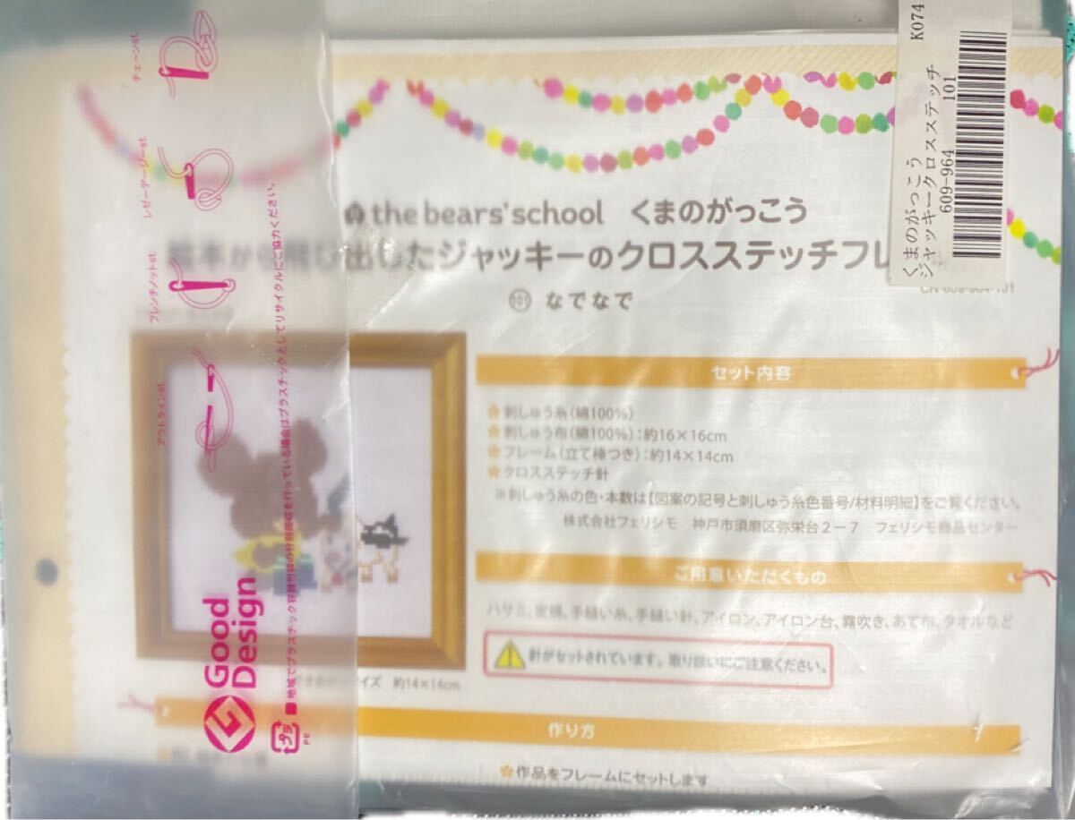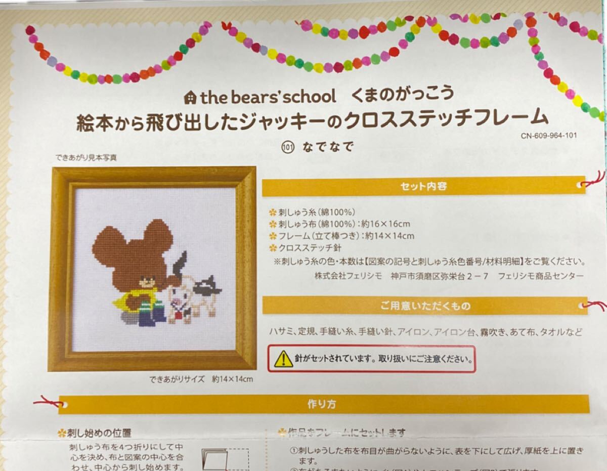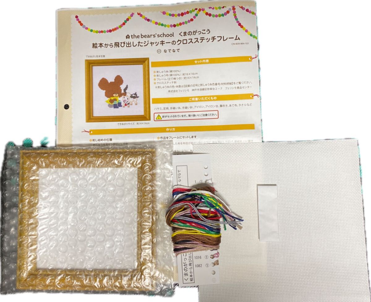 絵本から飛び出したジャッキーのクロスステッチフレームの会 101 くまのがっこう 「なでなで」 送料込み