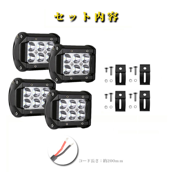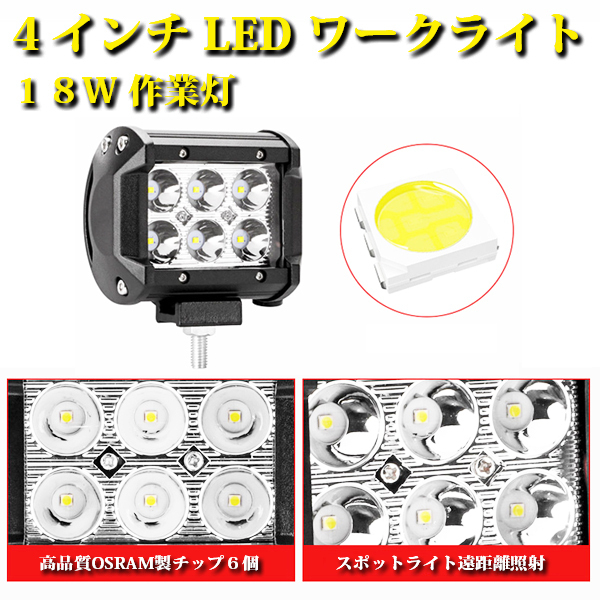 LEDワークライト 作業灯 4インチ 18W 6500K ホワイト 1200LM スポットライト 12V/24V 前照灯 トラック 建築機械 4C-18W 4個 新品