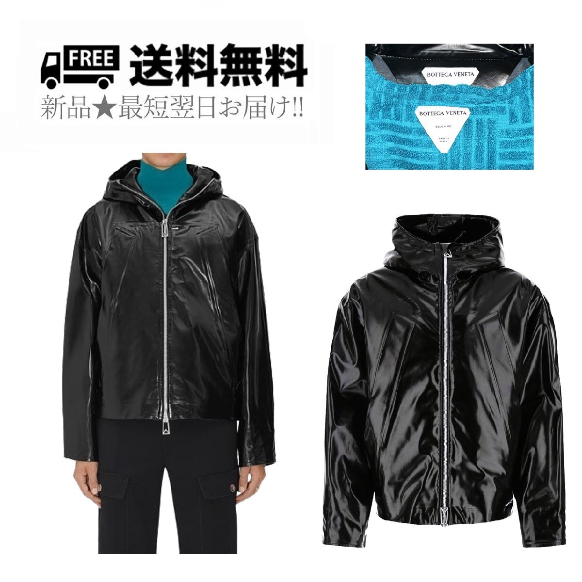 K389-M.. BOTTEGA VENETA ボッテガ ヴェネタ ブルゾン ジャケット フード付 ロゴ イタリア製 ★ 1000 ブラック