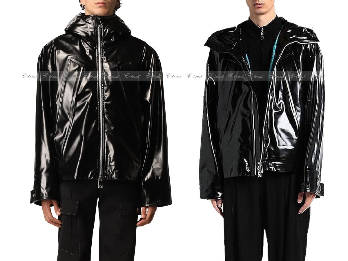 # 新品 未使用 正規店 本物 送料無料 男 男性 MENS メンズ 女 女性 レディース LADIES プレゼント PRESENT イタリア製 ユニセックス ロゴ LOGO ブラック 黒 BLACK ブルゾン ジャケット 替え釦 ボタン ラバー 光沢 撥水