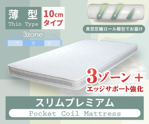 ※現在ご覧の商品ページはDサイズのご購入ページとなります。 ヤフオクの仕様上単一ページに複数バリエーションを掲載することができませんので、他バリエーションが希望の場合は別ページでご購入お願い致します。 お子様の二段ベッドやパイプベッド、背の高いチェスト形ベッドなどに最適 マット厚さ約10cmのポケットコイルマットレス 薄型マットながら3ゾーンのゾーニングとサイドメッシュ機能も充実 薄型(厚さ約10cm)のポケットコイルマットレス。 お子様用ベッド、二段ベッド、パイプベッドなどに最適です。 配達業者を指定いただくことはできません。 北海道/沖縄/離島のお届けに別途中継料金が発生します。 ※別途送料が発生する場合は後ほどご連絡させていただきます。 当店は正規店です。 タイミングによっては在庫切れの場合があります。