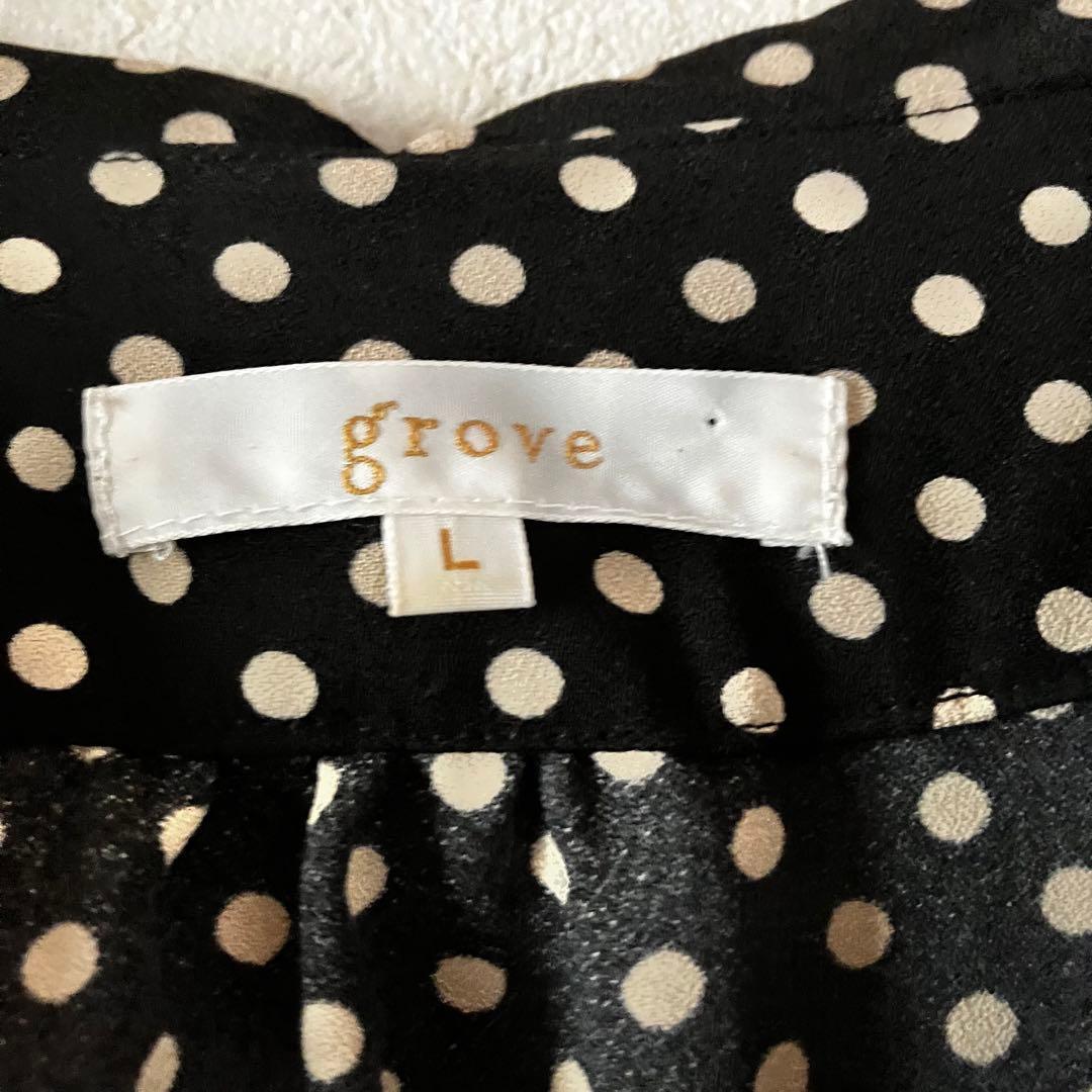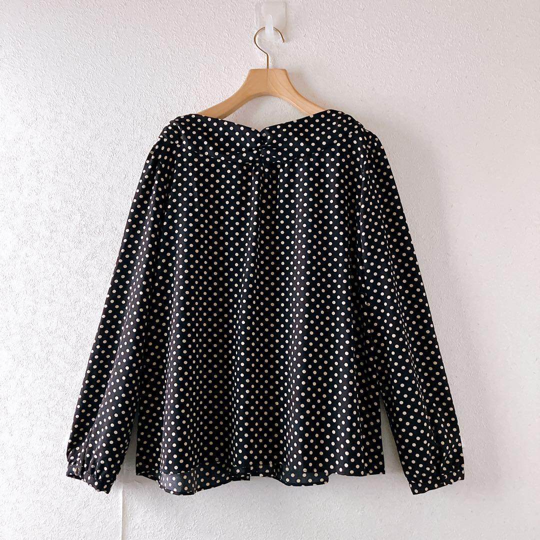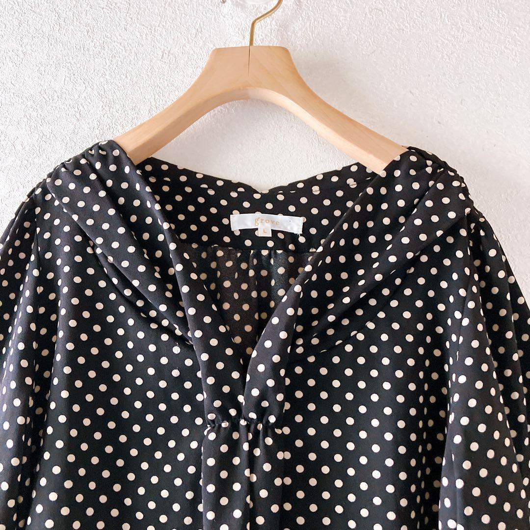 グローブ grove ドット 水玉柄 長袖 ブラウス トップス 黒  ゆったり 体形カバービジネス 100円スタート