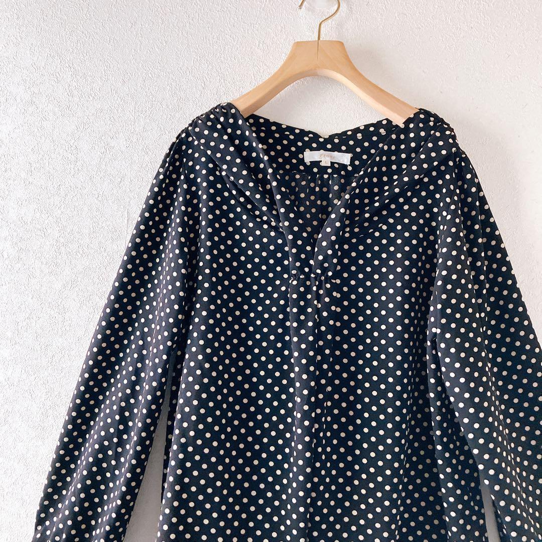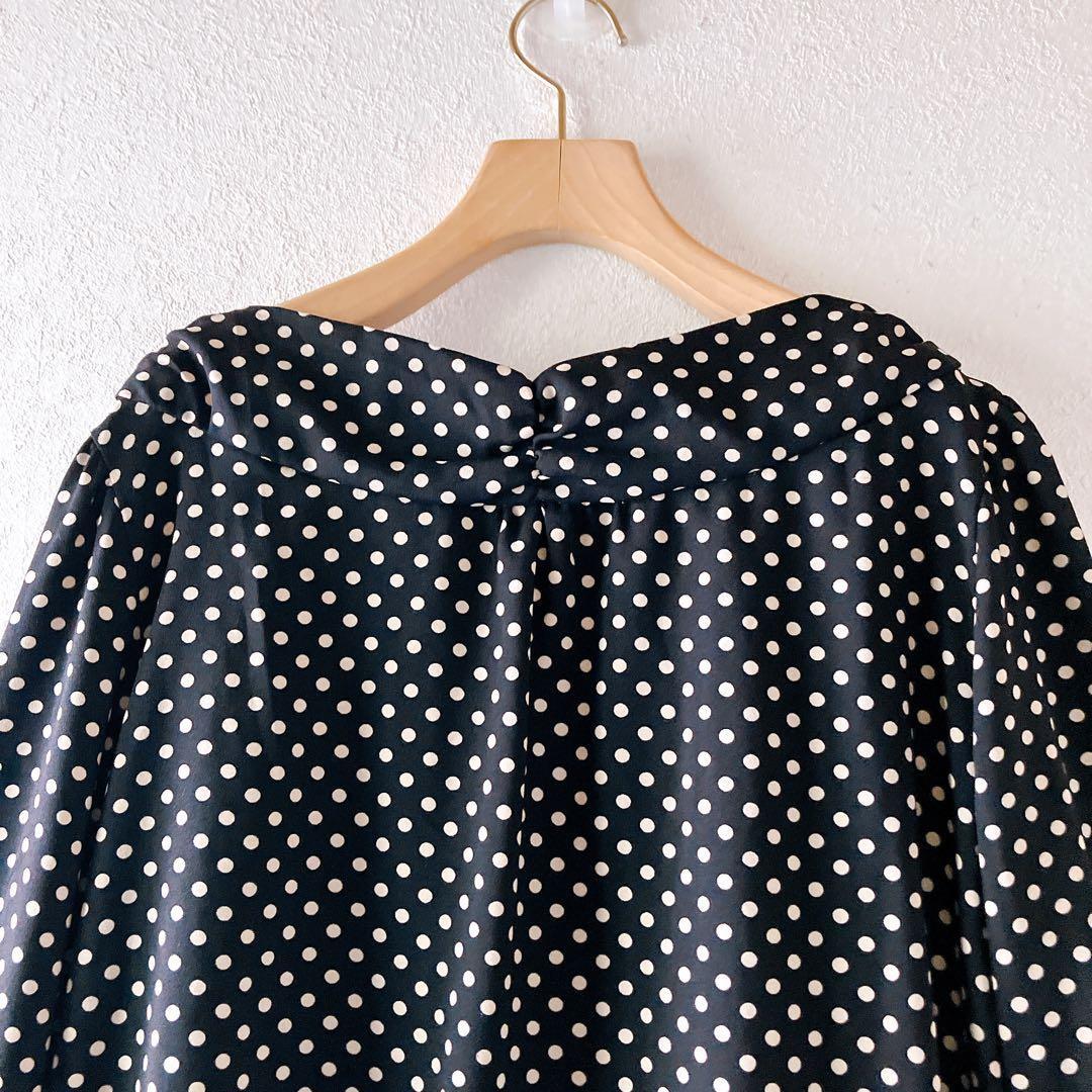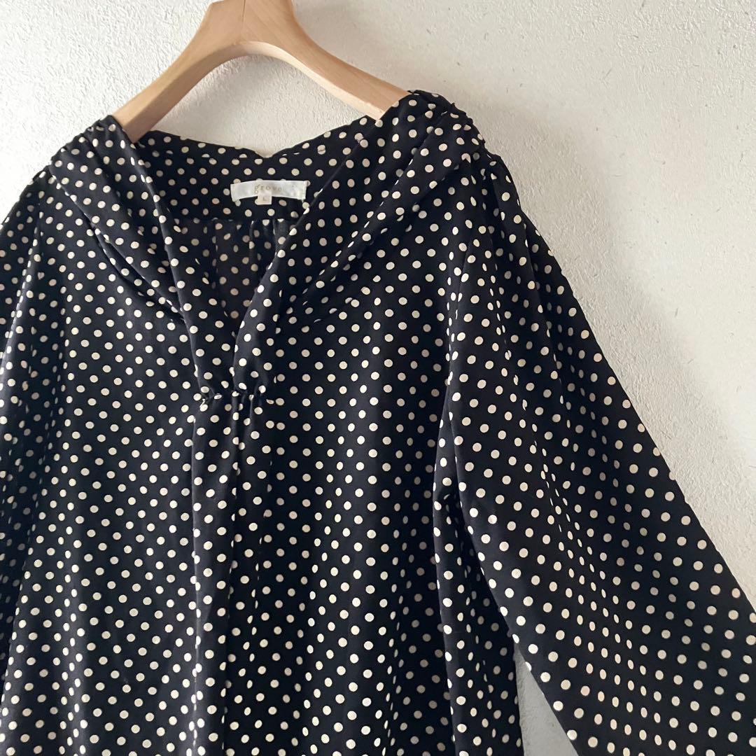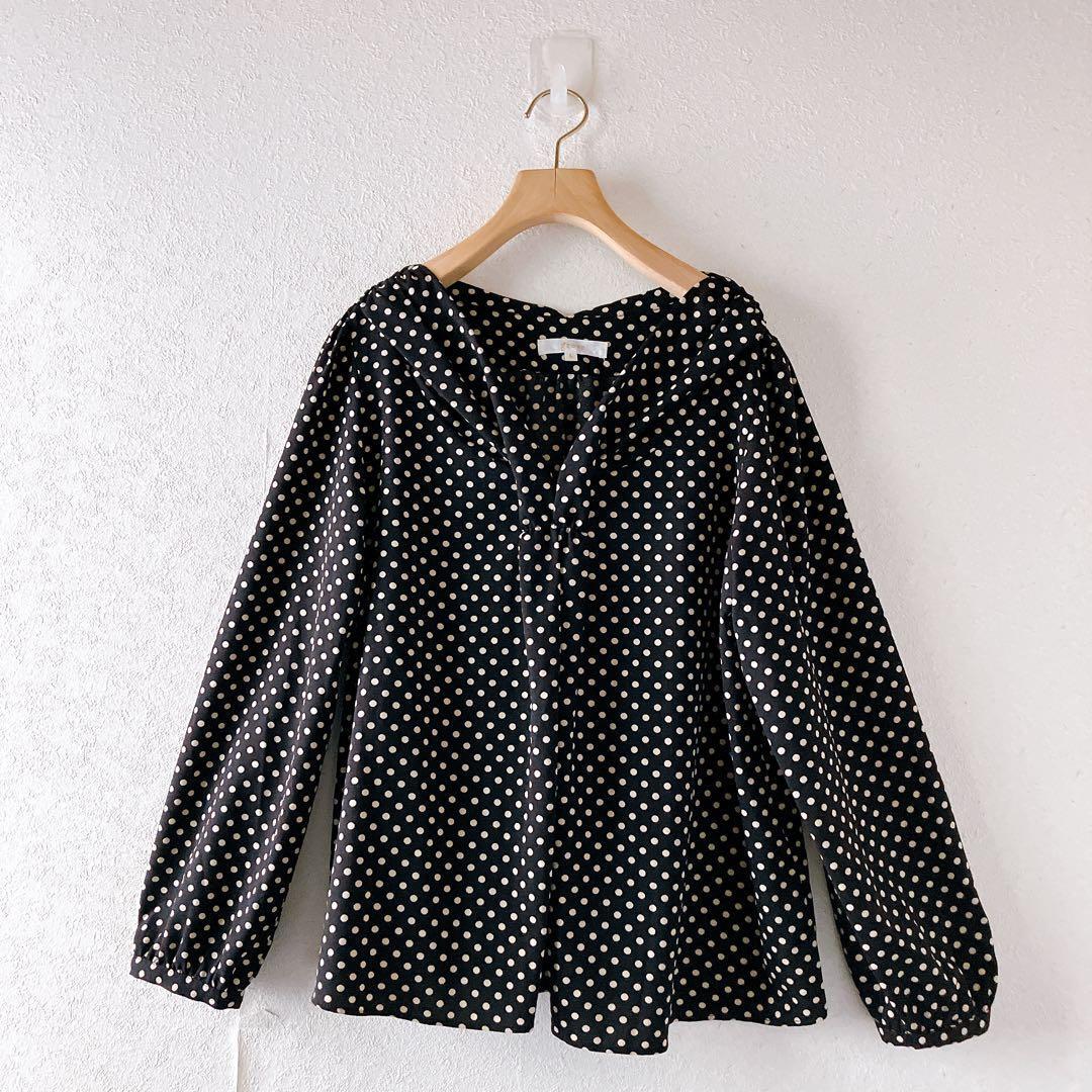 グローブ grove ドット 水玉柄 長袖 ブラウス トップス 黒  ゆったり 体形カバービジネス 100円スタート