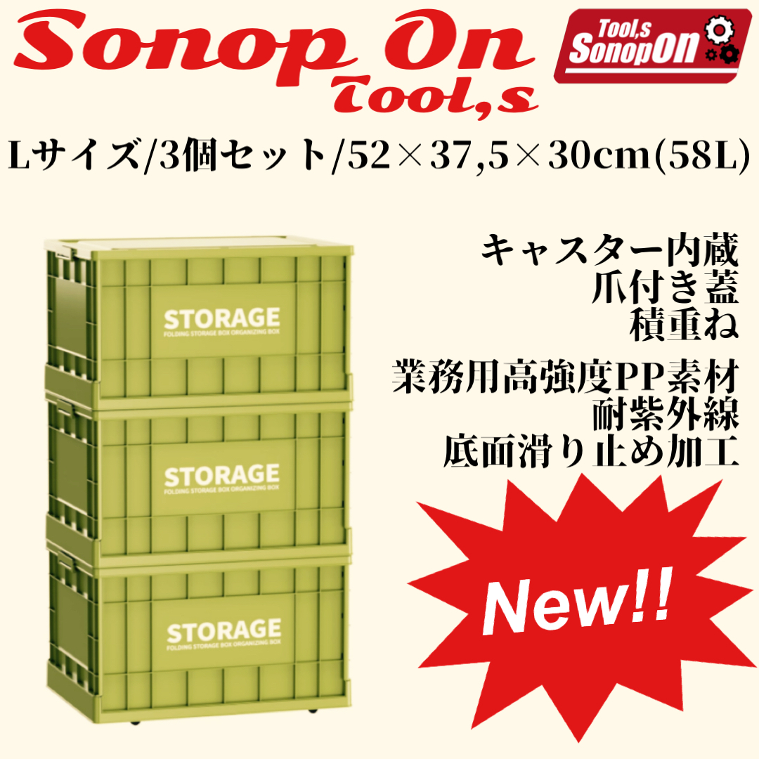【こいつは雑に扱え!狂気の業務用耐久性!】収納ボックス Lサイズ3個 折りたたみ式 コンテナボックス 蓋付き キャスター付き 58L 7449