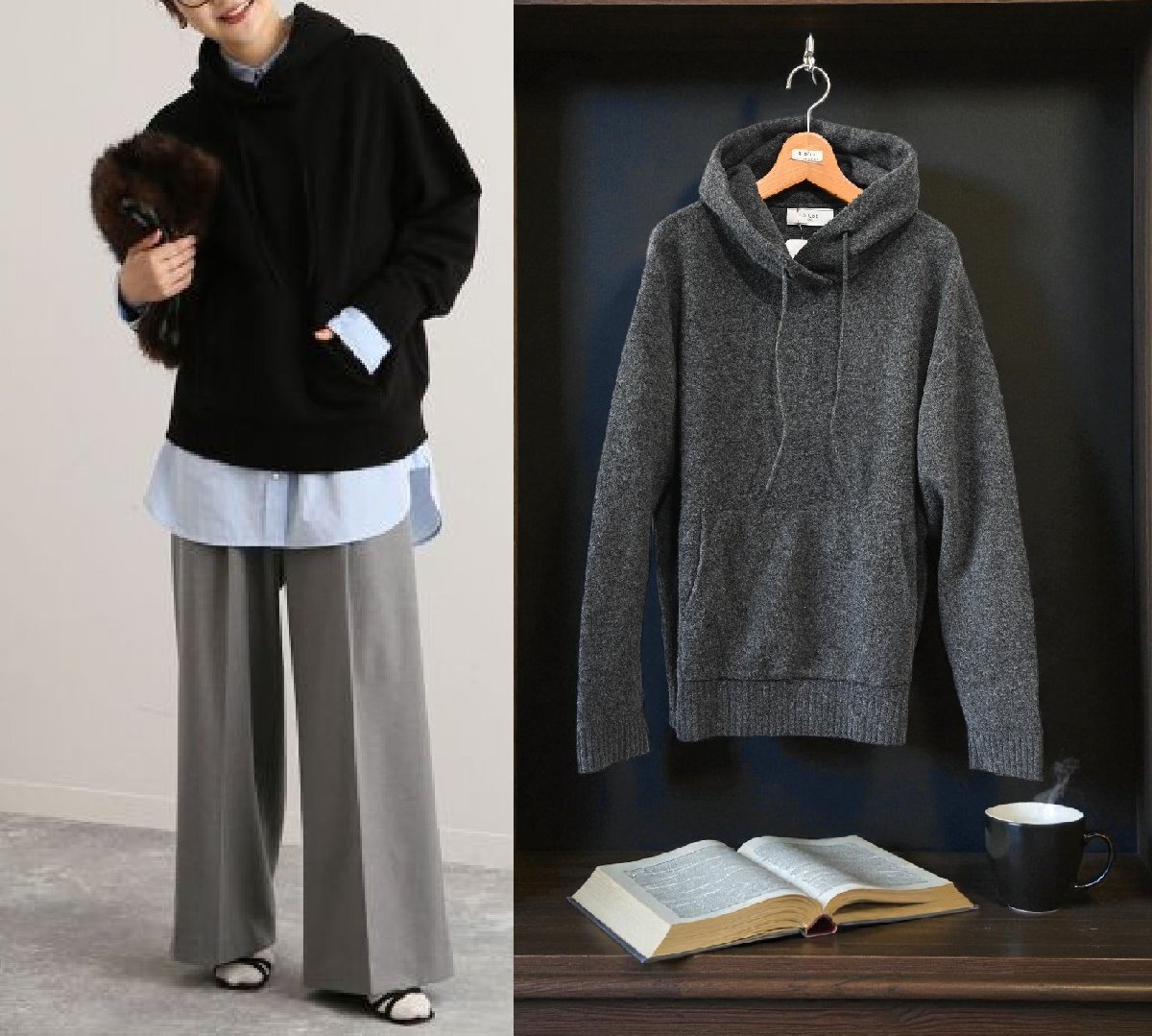 エアリー感のある起毛ストレッチ素材を使用したニットフーディー。
