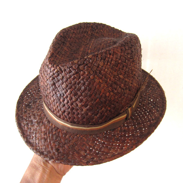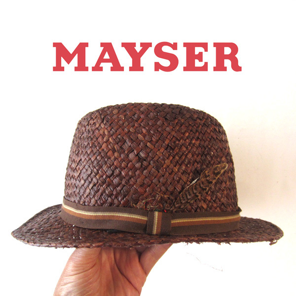美品 ドイツ製 MAYSER/マイサー★ 麦わら 羽根付き中折れハット 58cm