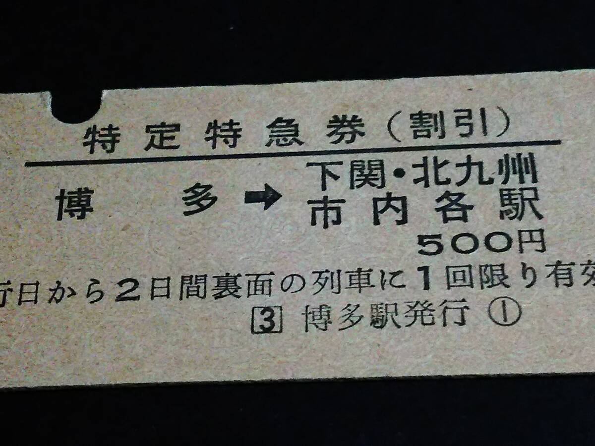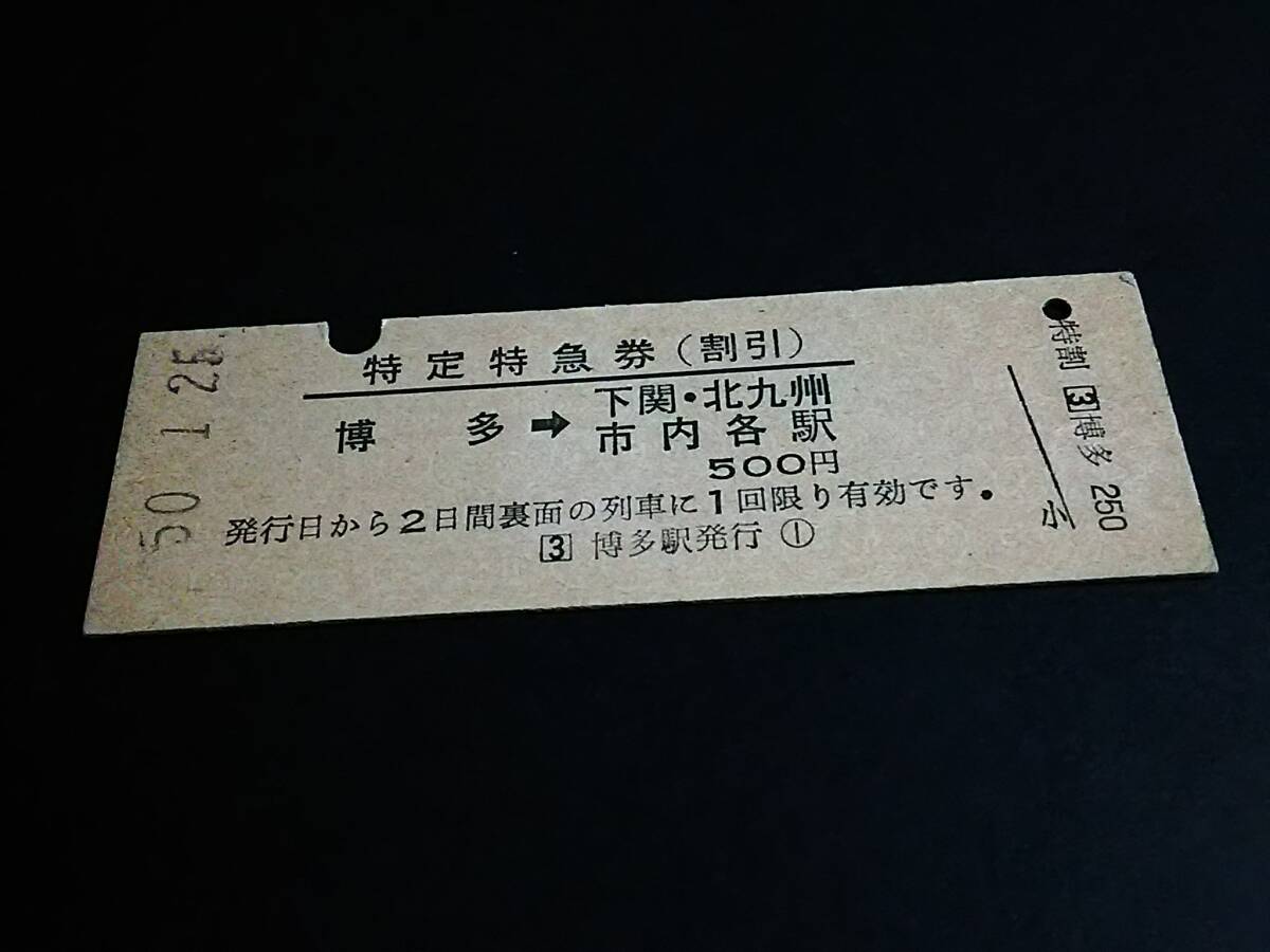 【特定特急券(割引)(D型)】 「つばめ号・にちりん号・まつかぜ号・かもめ…」[裏面印刷] 博多→下関・北九州市内各駅 S50.1.25