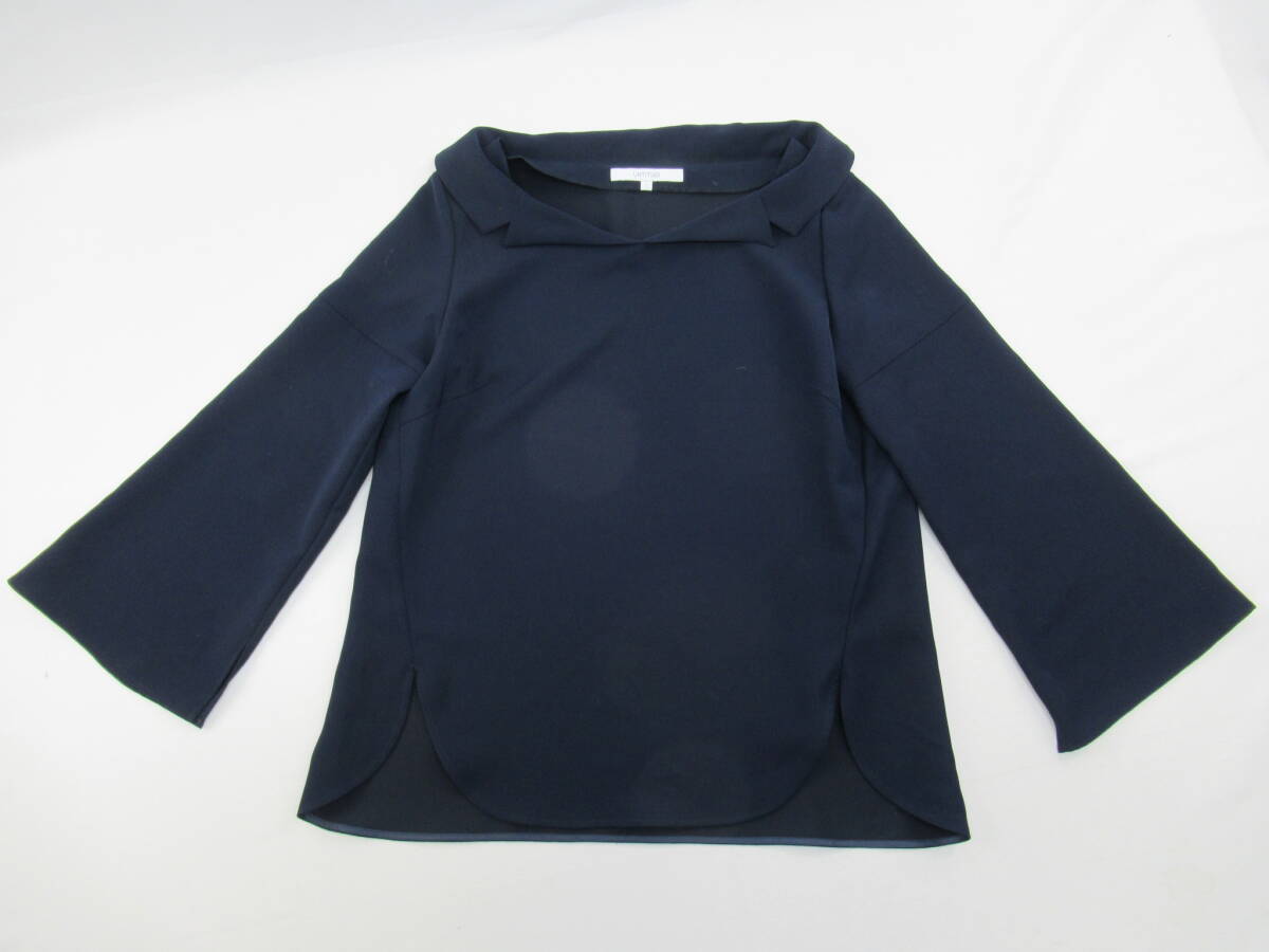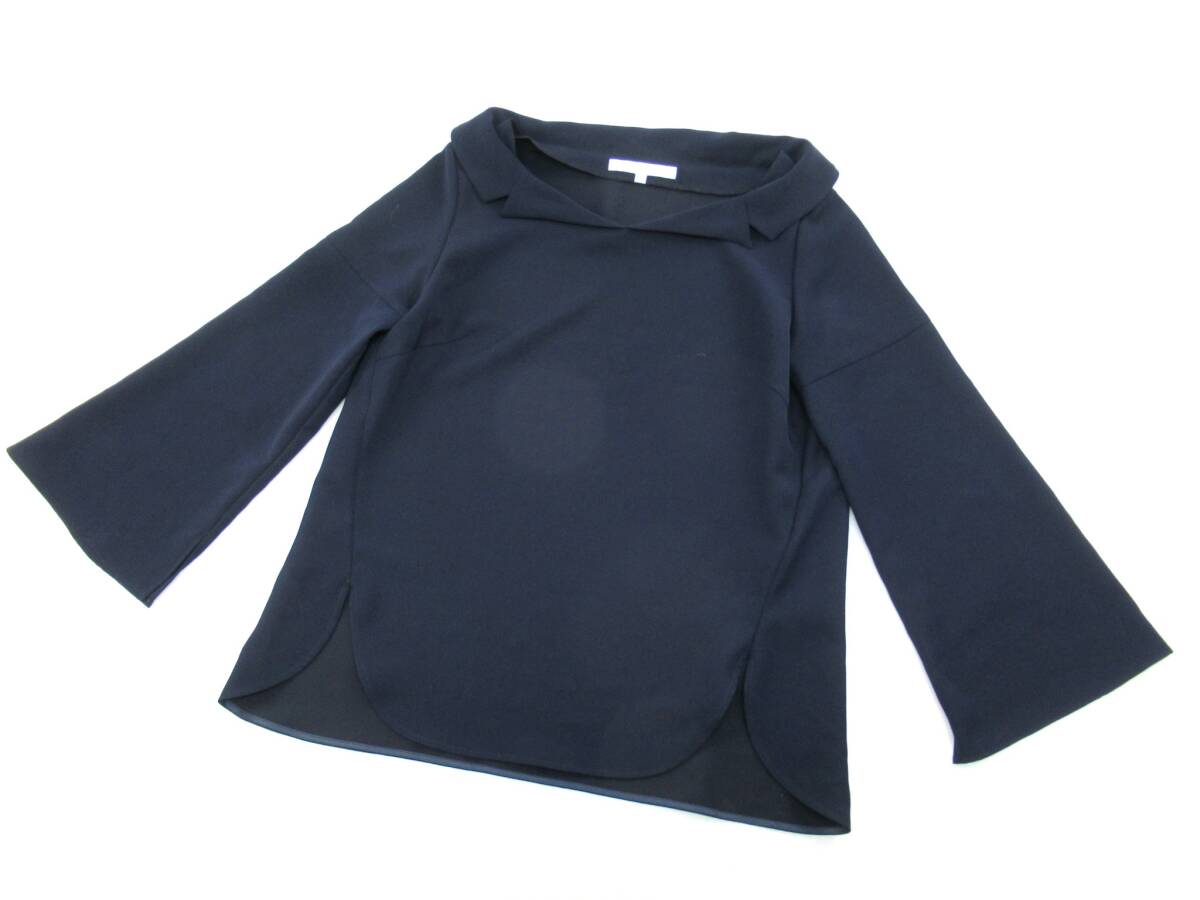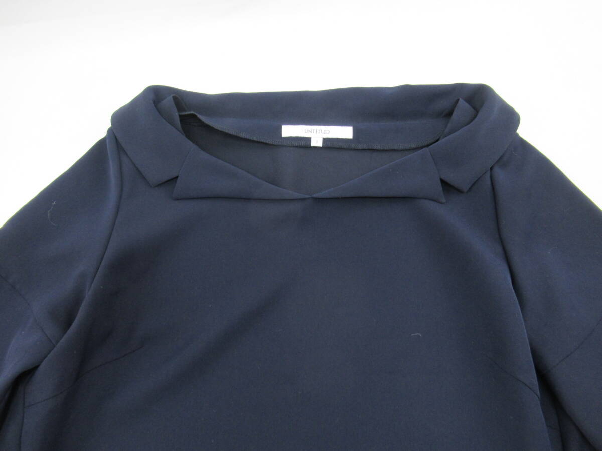 【送900円】2683 UNTITLED アンタイトル デコルテネックシャツ ネイビー ブラウス フレア袖 スリット ポリエステル100% 3