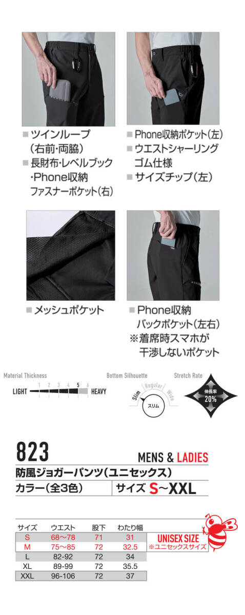 バートル 防風ジョガーパンツ 823 秋冬用 XL 53ストームグレー
