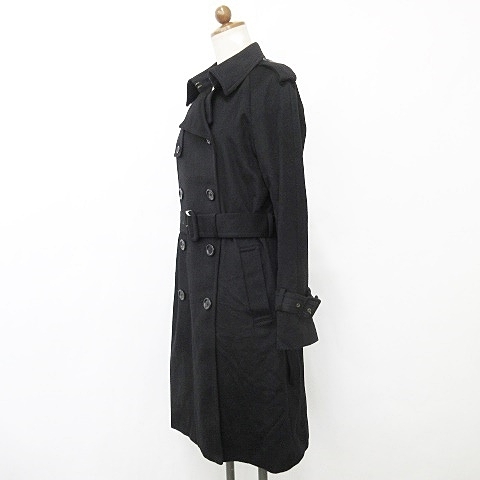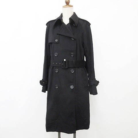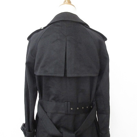 ドロワットロートレアモン Droite lautreamont トレンチコート ロング ダブル ベルト カシミヤ 黒 ブラック 2 レディース