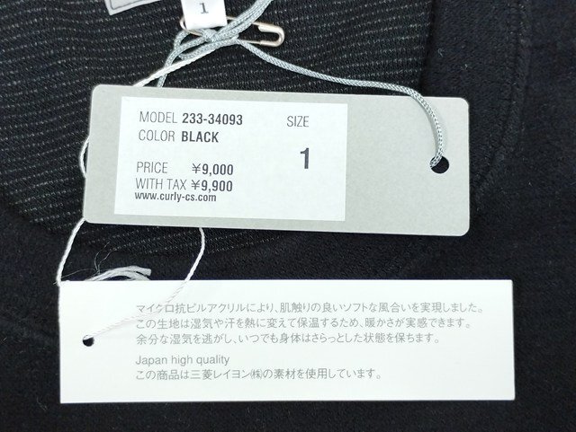 | CURLY & Co. カーリーアンドコー 長袖Tシャツ 1 ブラック PREMIEREWARM L/S TEE 日本製 |