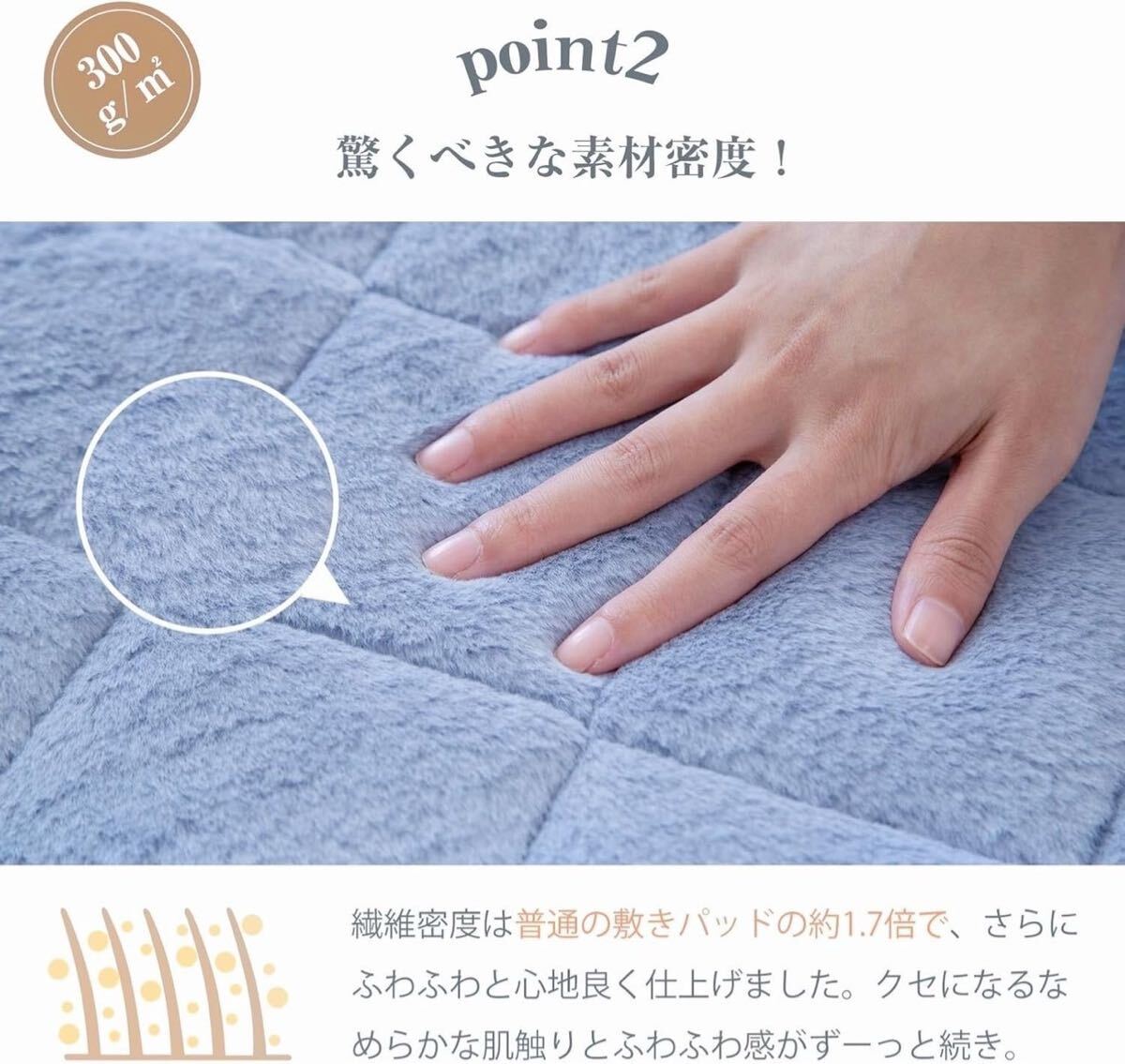 ウサギの毛に着想を得た超細長繊維を使用し、本物のファーのようなふんわりとした柔らかさで肌を優しく包み込み、心身を温めます