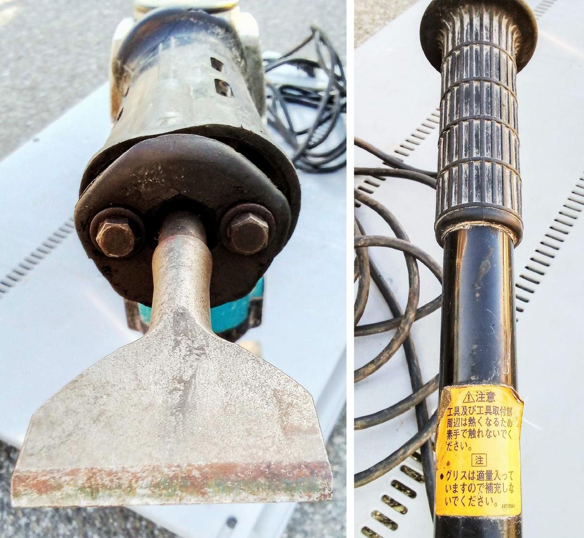 マキタの電動ケレンが入荷致しました。 傷や汚れなどの使用感は多くございますが、動作に問題はありません。 ビットが付属しておりますが、おまけ程度にお考えください。 詳しい商品状態につきましては写真でのご確認をお願い致します。 本体サイズは約W1100×D105×H370mmとなっております。 栃木県大田原市のアメ商百貨店西那須野店に在庫がございます。 営業時間内にご来店頂ければ、直接お手に取って商品をご確認頂けます。 この機会に是非ご検討宜しくお願い致します。 【当アメNETでは】 出品する際の工具や業務用品、他の商品におきまして、清掃(吹き上げ)や動作確認をおこなっておりますが、 骨董・アンティークに関しては雰囲気を損なわないよう、最小限の清掃に留まらせて頂いております。 |
