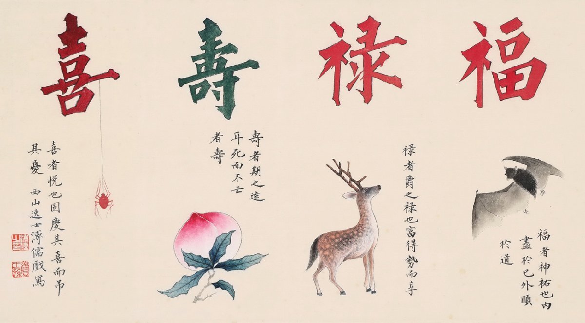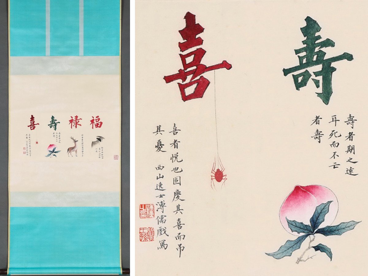 | ◇商品名◇ | ■大成美術■【溥儒書 紙本 福禄寿喜図】(検)近代書画家 中国画 墨寶妙品 中国書道 掛け軸 古美術 骨董 332 | ||