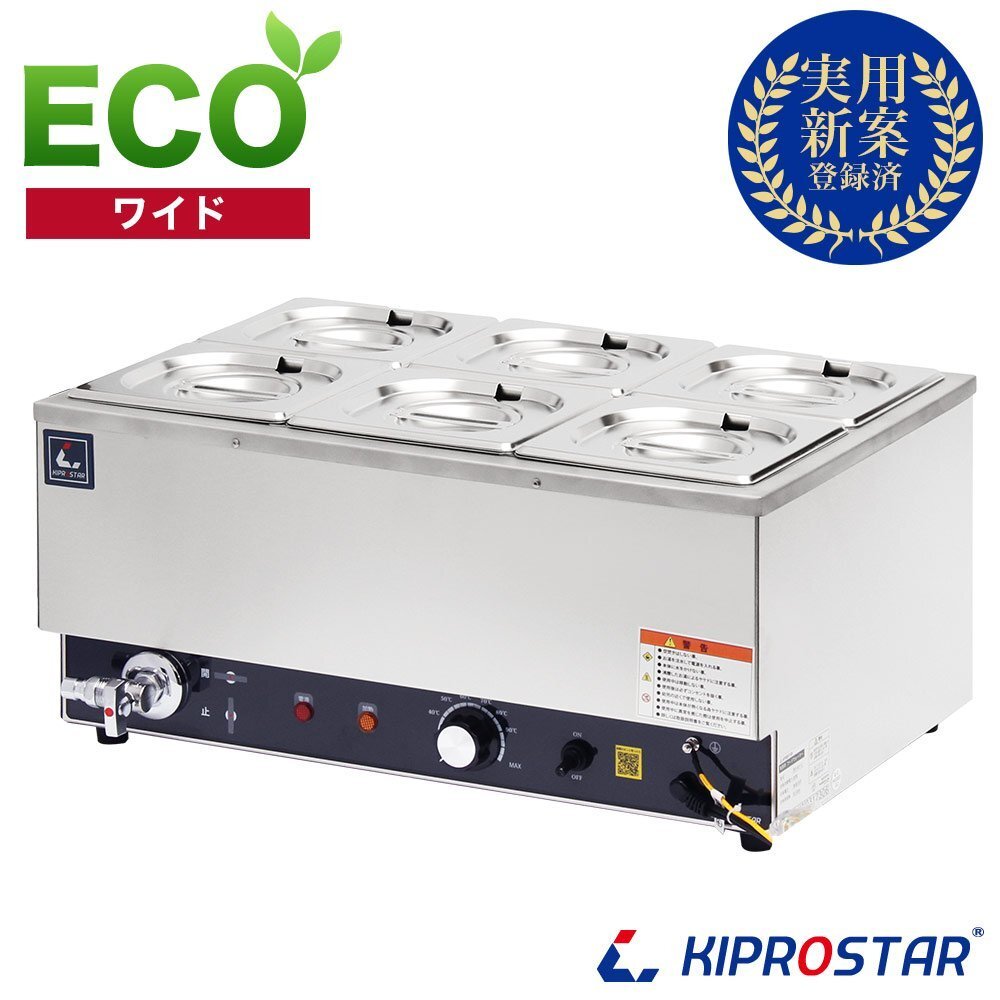 | 特長 | ・熱効率を高める特殊構造となっており、業務用フードウォーマー省エネを実現。 ・操作盤が幅が広い部分にあるワイドタイプ(横型) 【ホテルパン容量】 1/1 約20.5L、1/2 約9.0L、1/3 約5.7L、1/4 約4.2L、1/6 約2.5L **満水時の容量です** |