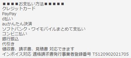 | 法人様の複数買い、事前見積もり、領収書、請求書も対応させて頂き ます。 |