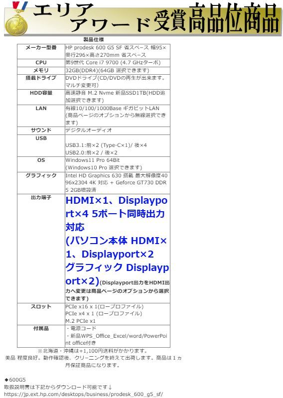 | 送 料 | ◆本州・四国・九州内各都府県は送料無料! 北海道/沖縄は送料1100円 ※ パーツ等小型商品は出荷から到着まで1~2日程度かかります。 ・PC・モニタ等の配送は、日本郵便 ゆうパック便でお届けいたします。 ・パーツ等はポスト投函便にてお送りします。 ■来訪での引取も可能です。 |