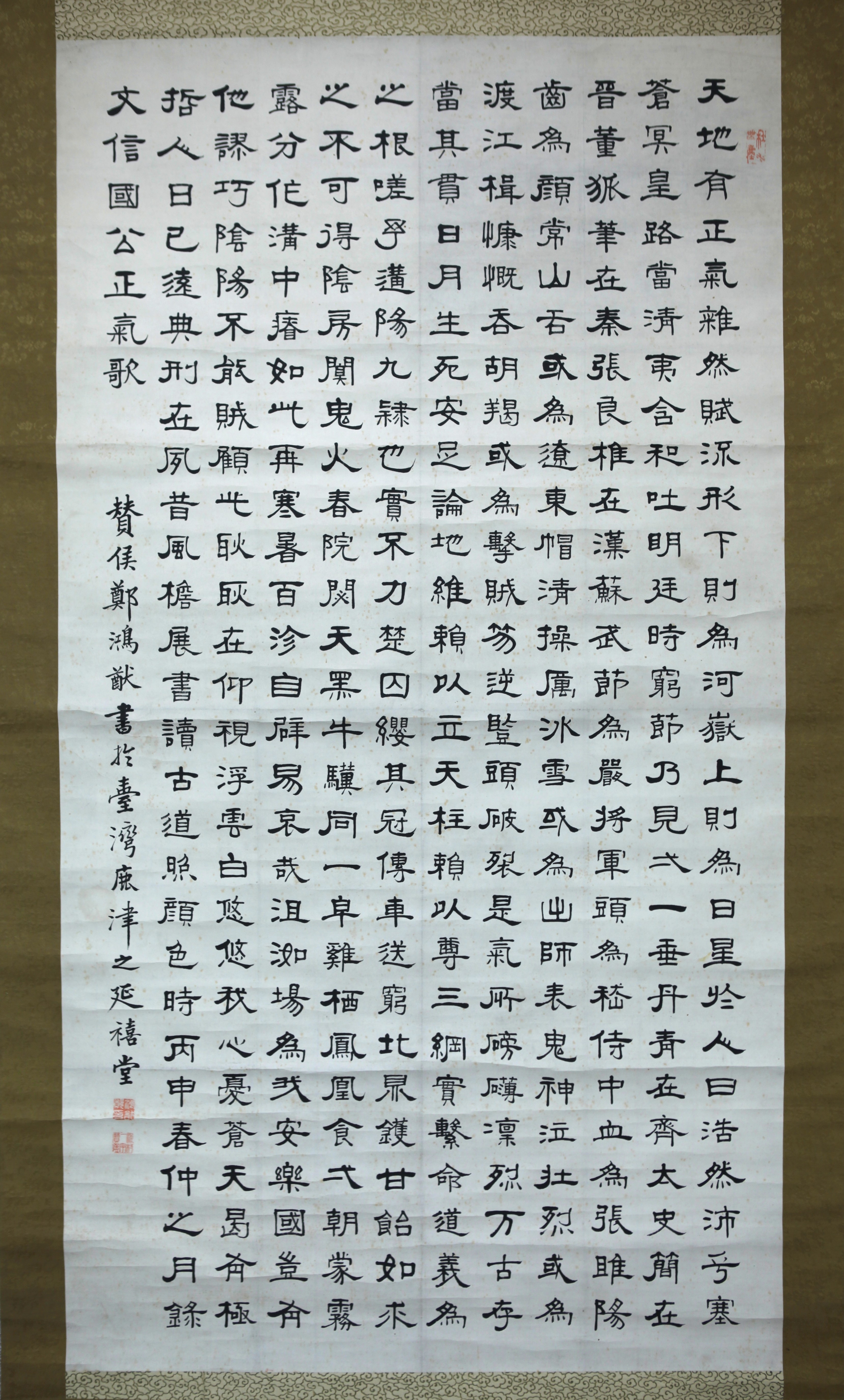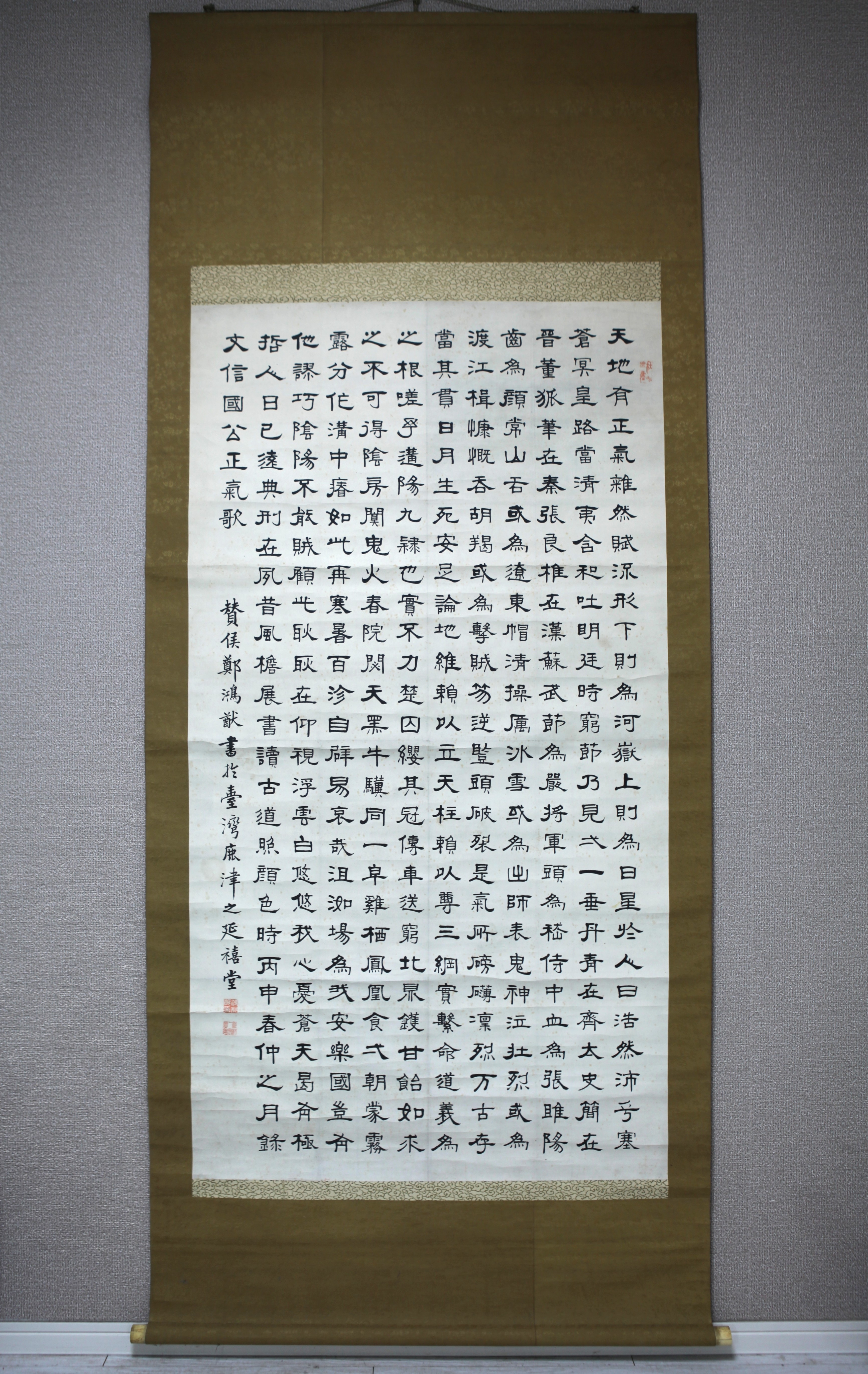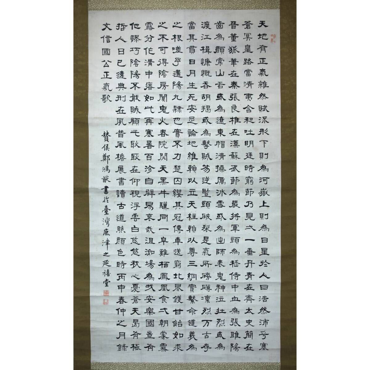 | 【真作】【風車】 鄭鴻猷 「正気歌」◎肉筆紙本 大幅◎晩清時代 台湾の書家 光緒秀才 鹿港の三大刻印家 中国画 | ||||||||||||||||||||
