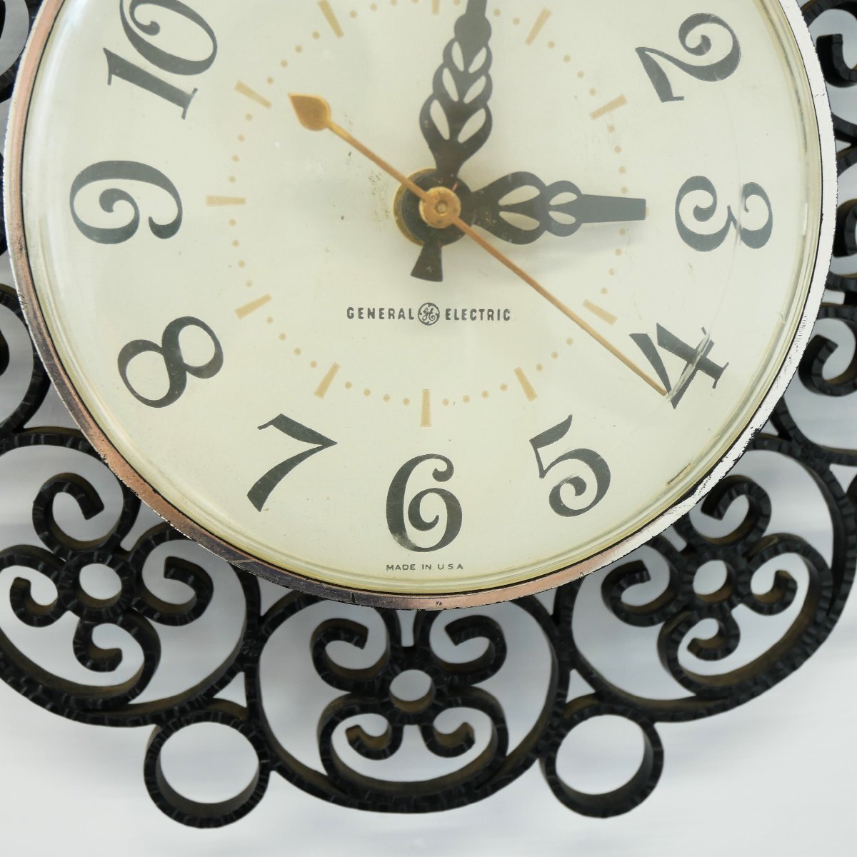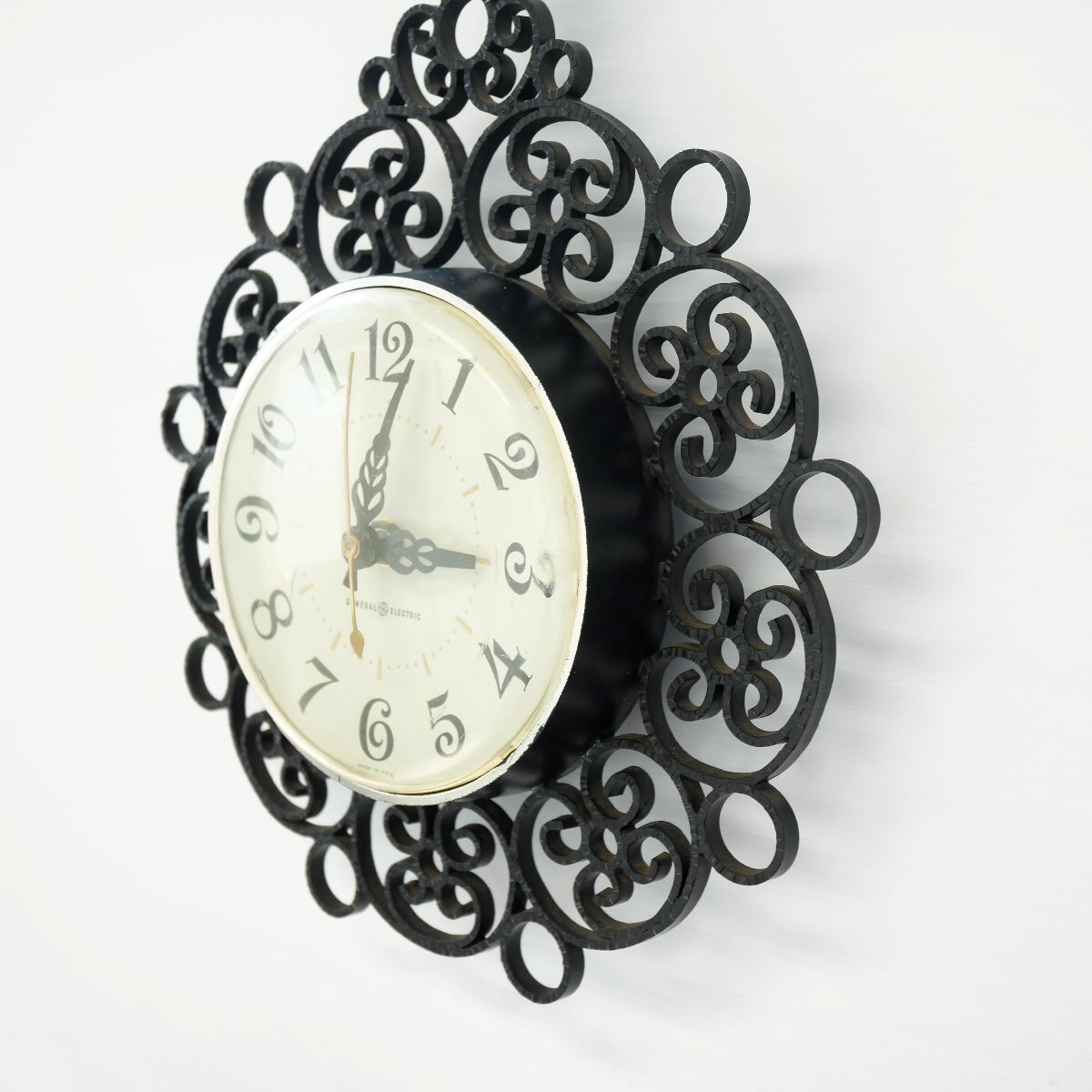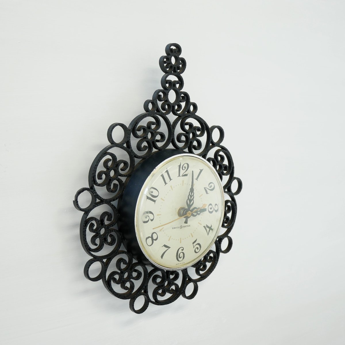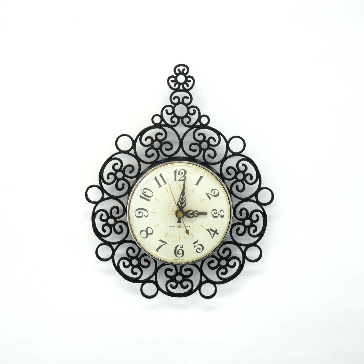 | 商品説明 explanation | 1960年代の「GENERAL ELECTRIC」社製、壁掛け時計です。 文字盤(プラスチック) カバー(プラスチック) 放射状の飾り(プラスチック) ミッドセンチュリースタイルのインテリアにいかがでしょうか。 元は電気式でしたが、カチカチと音がしないスイープクオーツの乾電池式ムーブメント(中の機械)に交換していますので、時間はほぼ正確です。 |