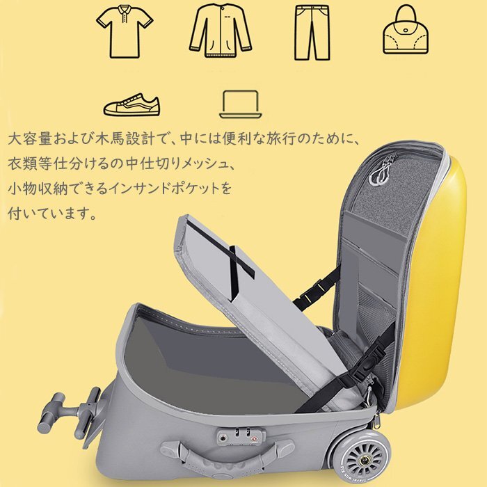 【ベビーカーとして使用可能】キャリーケースにハンドルと足掛けが付いていますので、お子様は乗っている時、手と脚を置きまして、良い乗り心地になります。旅行の重い負担から抜き出し、荷物だけでなく、子供をも乗れるので、大変便利です。お子様はより快適で安定した乗り心地を体験できます。週末の買い物でも、赤ちゃんと一緒の買い物でも、公園を散歩するときでも、一人で使うことができます。
