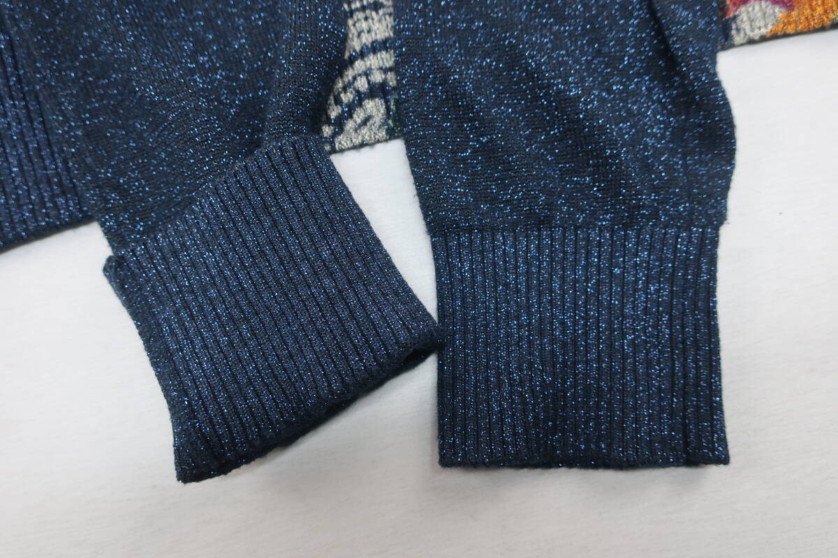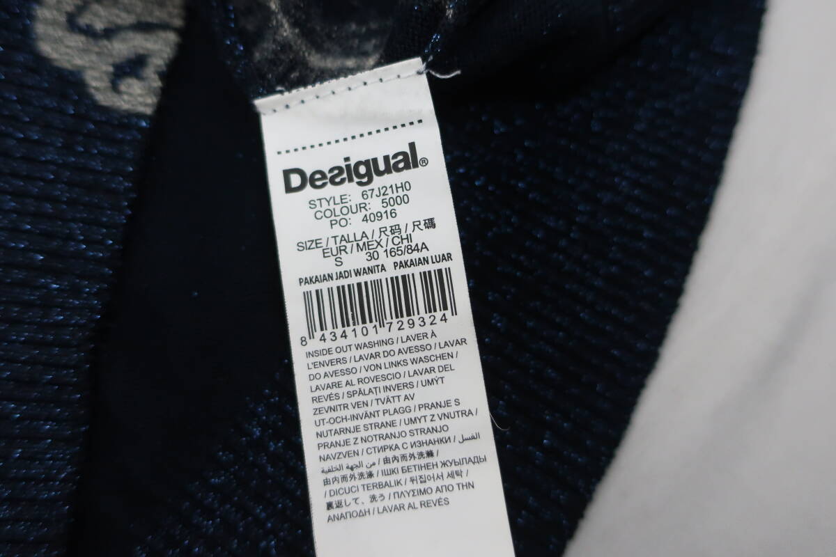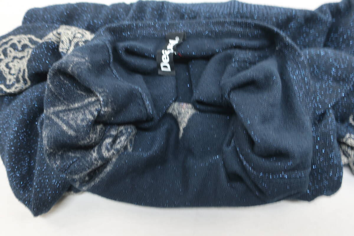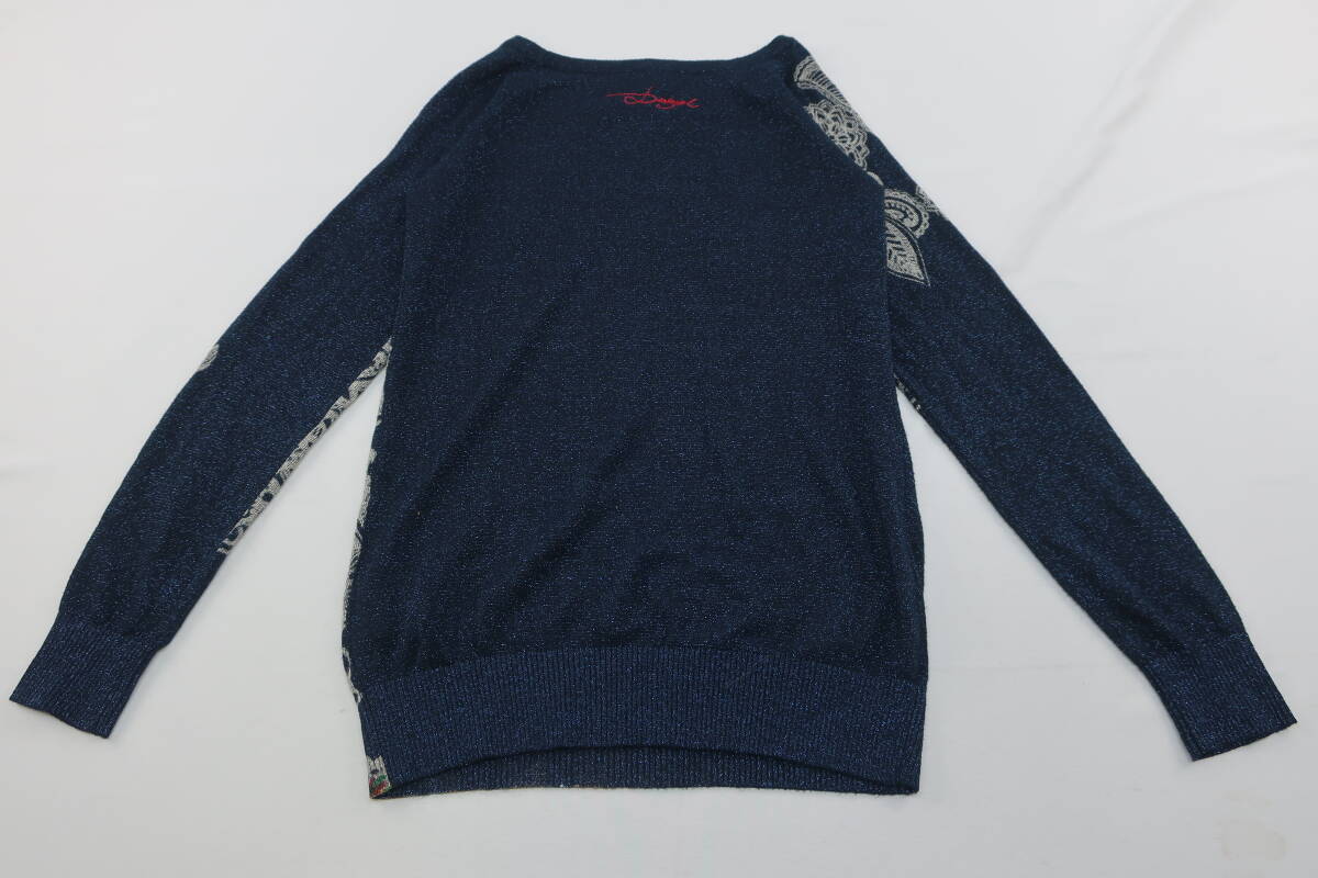 【送900円】2722 Desigual デシグアル レディース ラウンドネックニット セーター 総柄 ネイビー系 S ラメ入り スパンコール