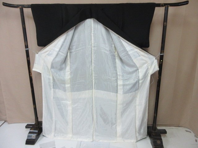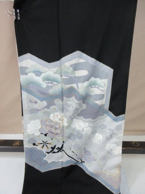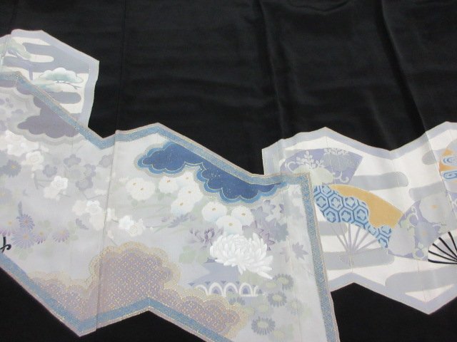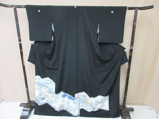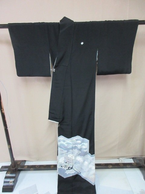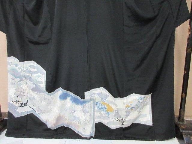 | 商品名 | 1円 中古 留袖 正絹 着物 縮緬 式典 和装 比翼付 紋付 巻き物 扇子 草花 ヱ霞 立木 雲 高級 袷 身丈159cm 裄63cm【夢職】★ |