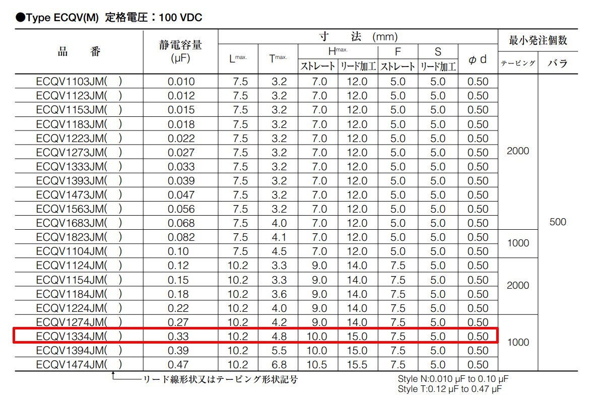 Panasonic ECQV1334JM メタライズドフィルムコンデンサ (100V/0.33μF/105℃) [10個組]【管理:SA2147】