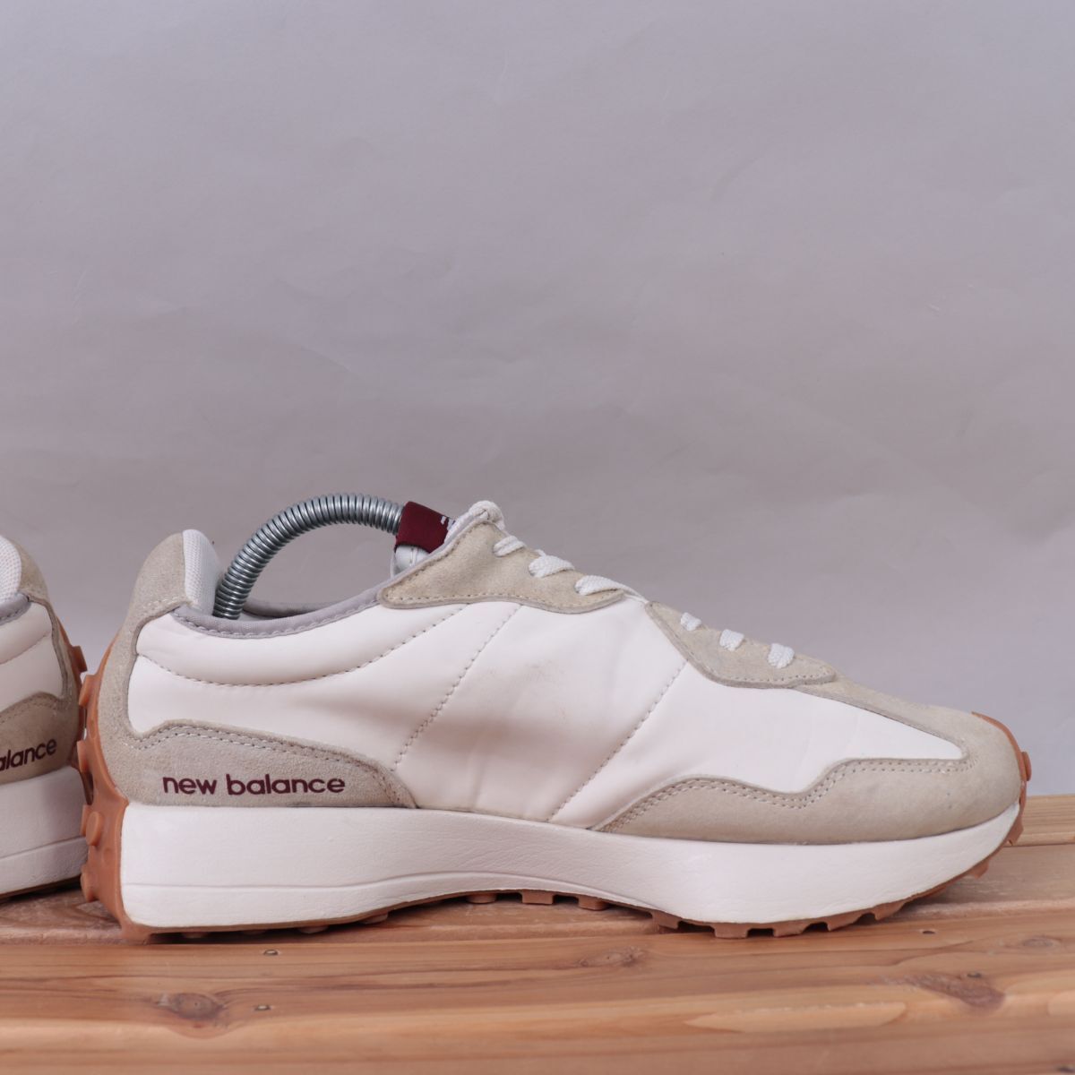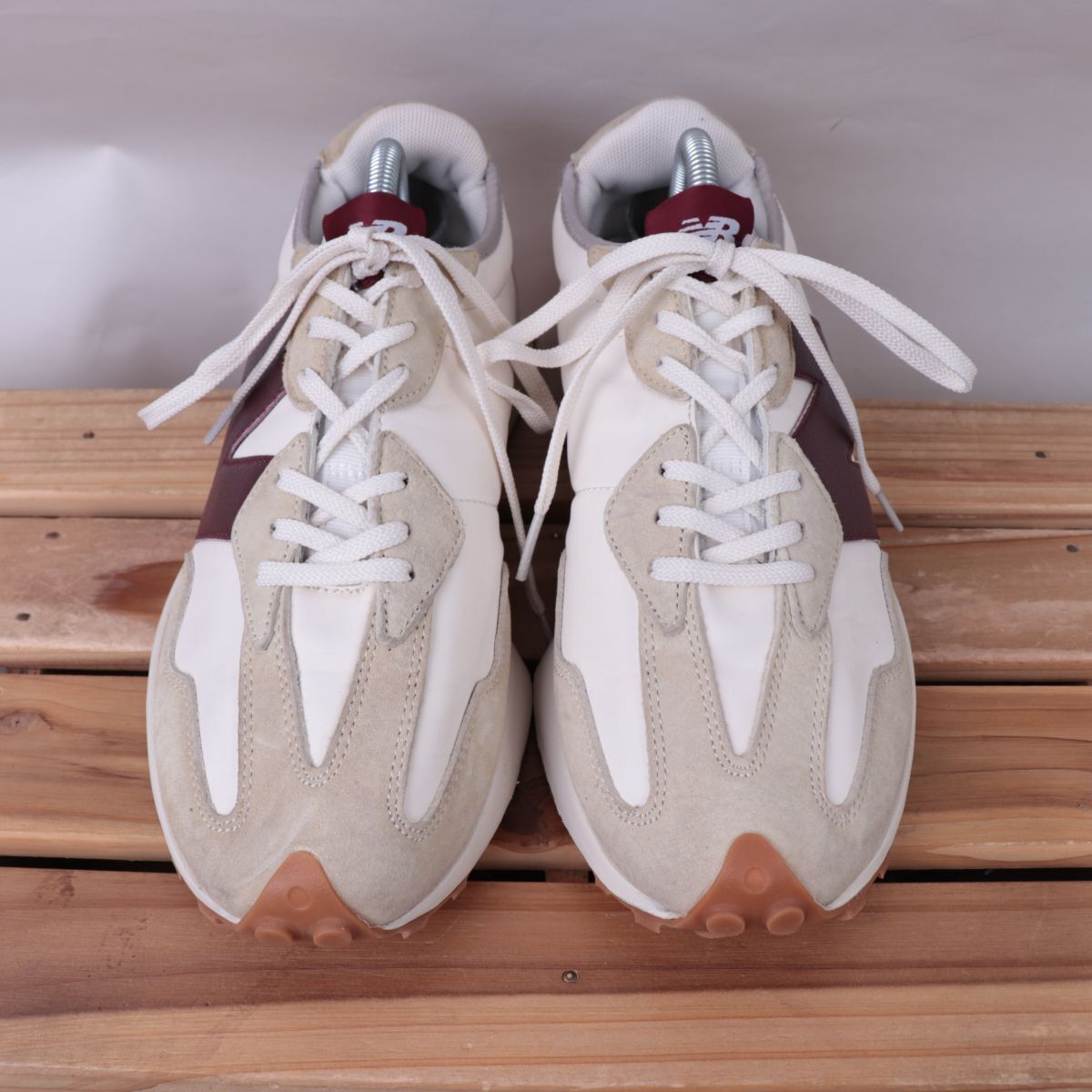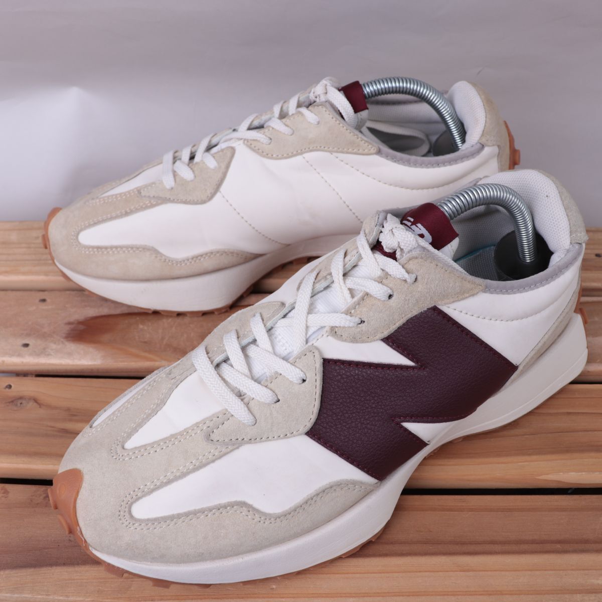 z3301【WS327KA】ニューバランス US9.5 27.5cm/白 ホワイト ベージュ 赤系 バーガンディ エンジ newbalance メンズ スニーカー 中古