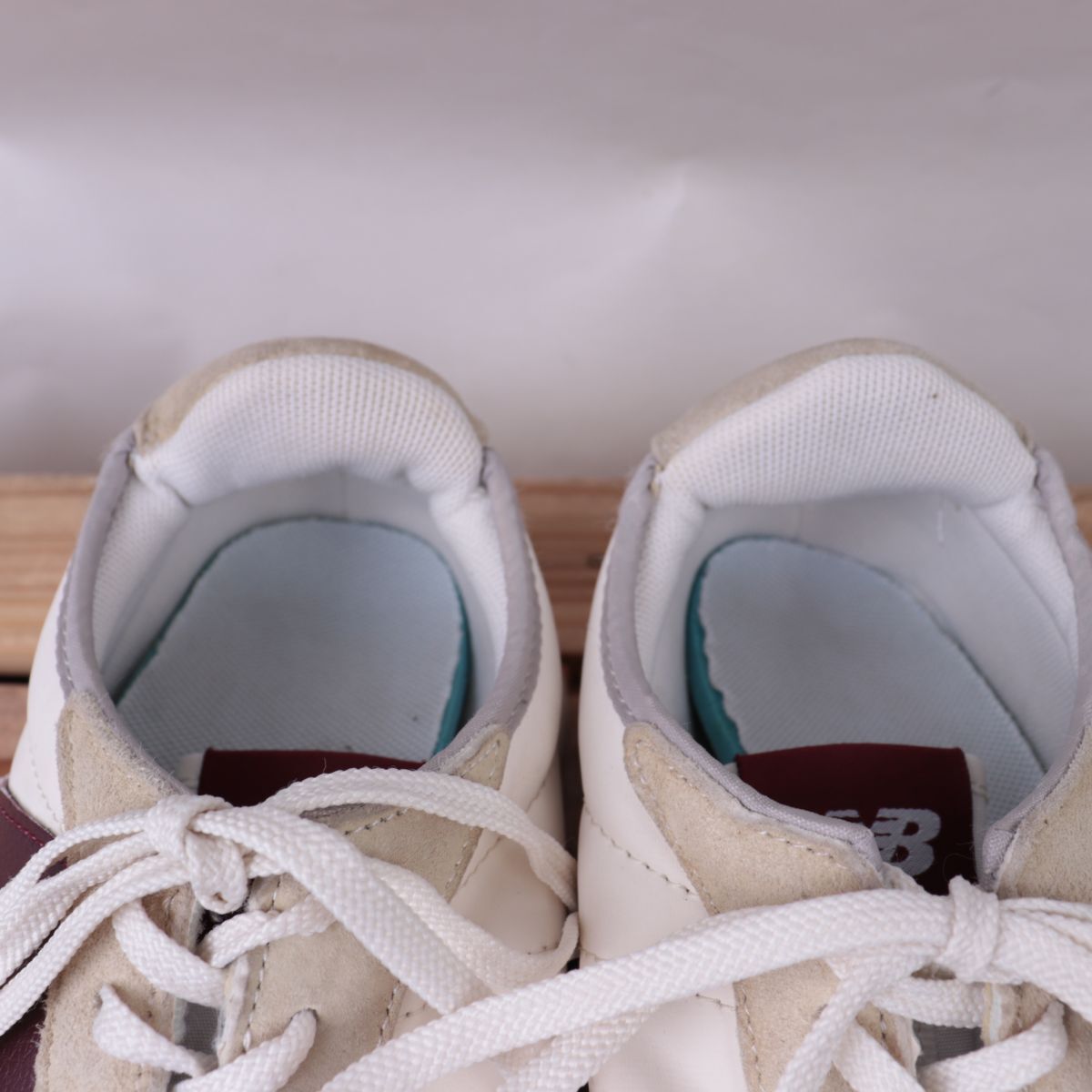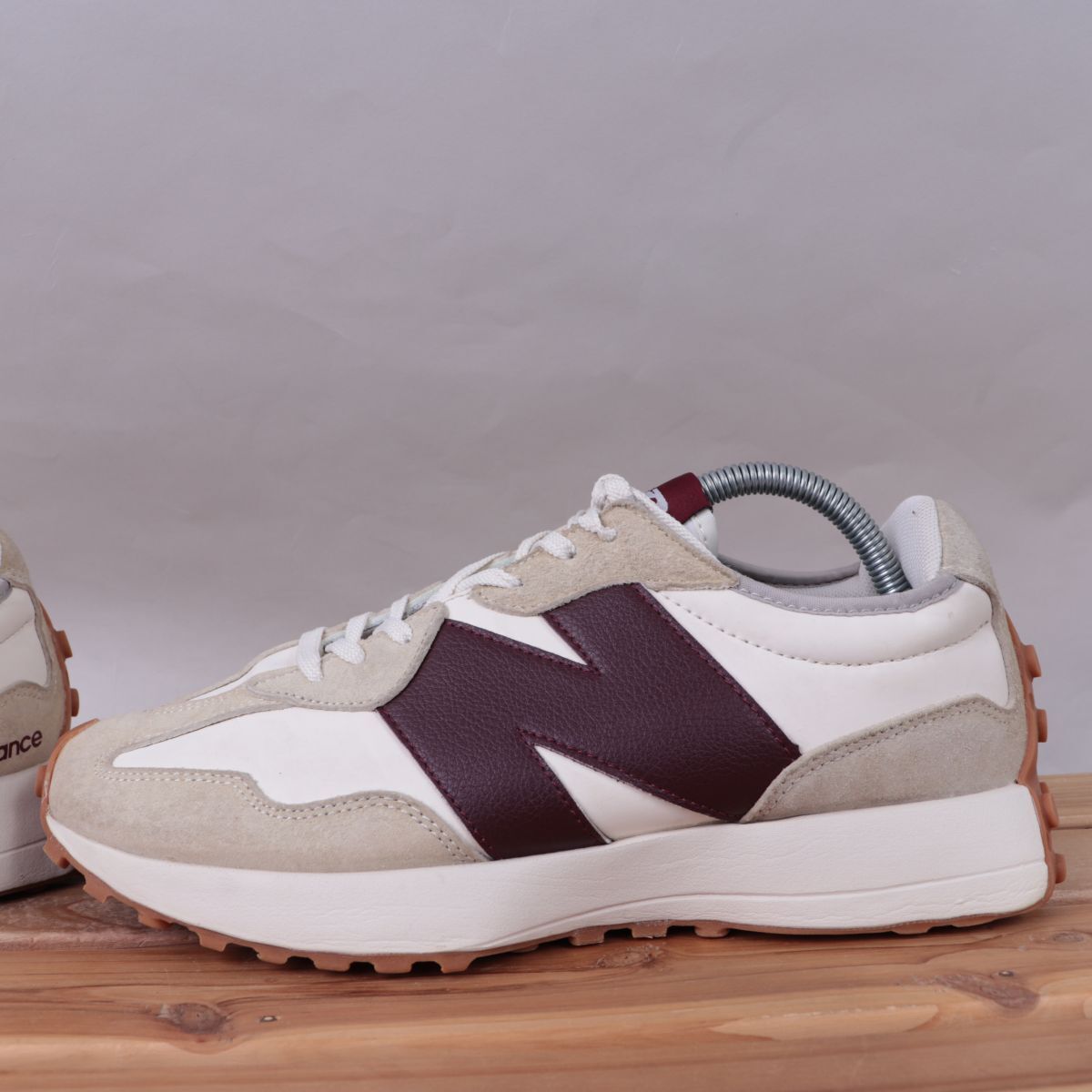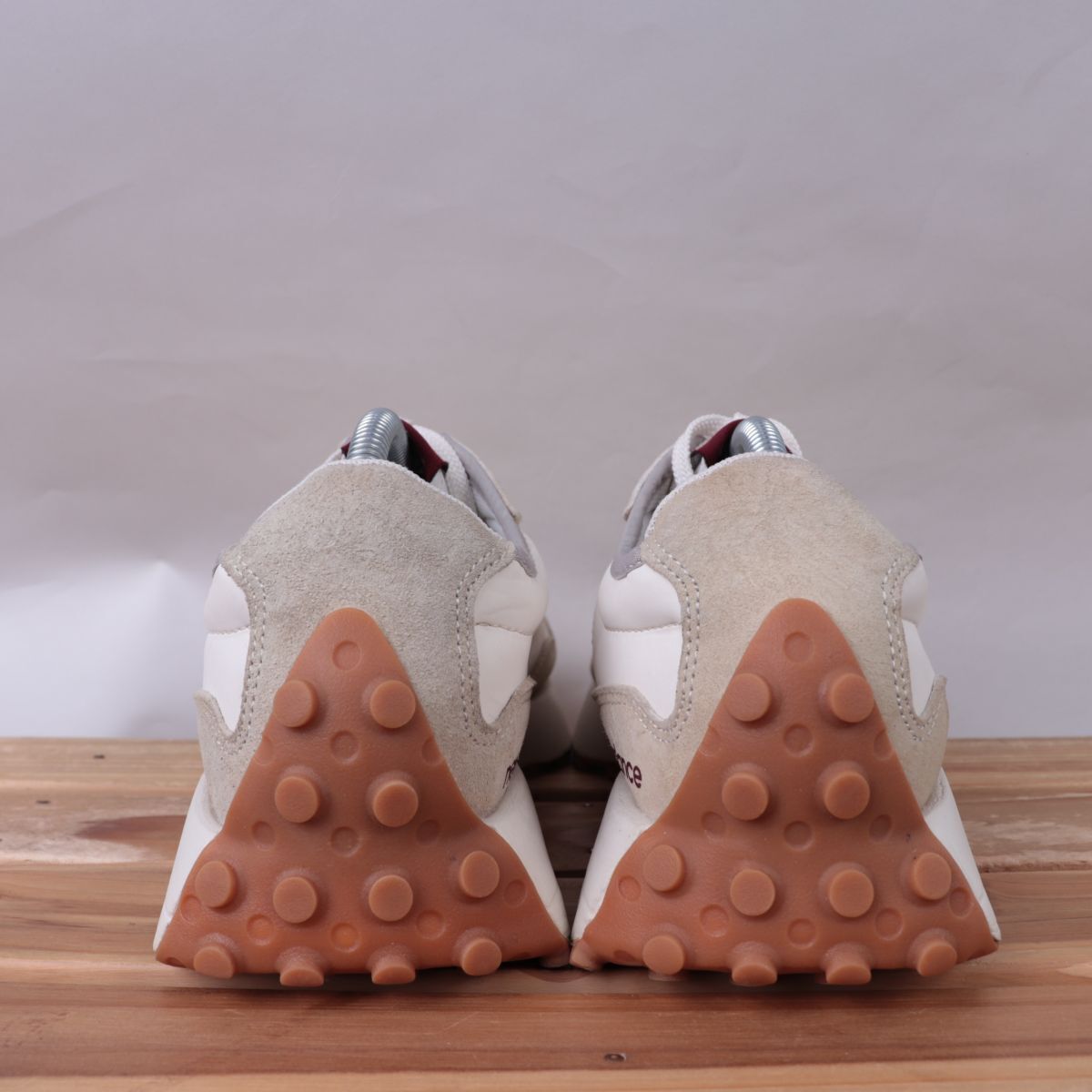 z3301【WS327KA】ニューバランス US9.5 27.5cm/白 ホワイト ベージュ 赤系 バーガンディ エンジ newbalance メンズ スニーカー 中古