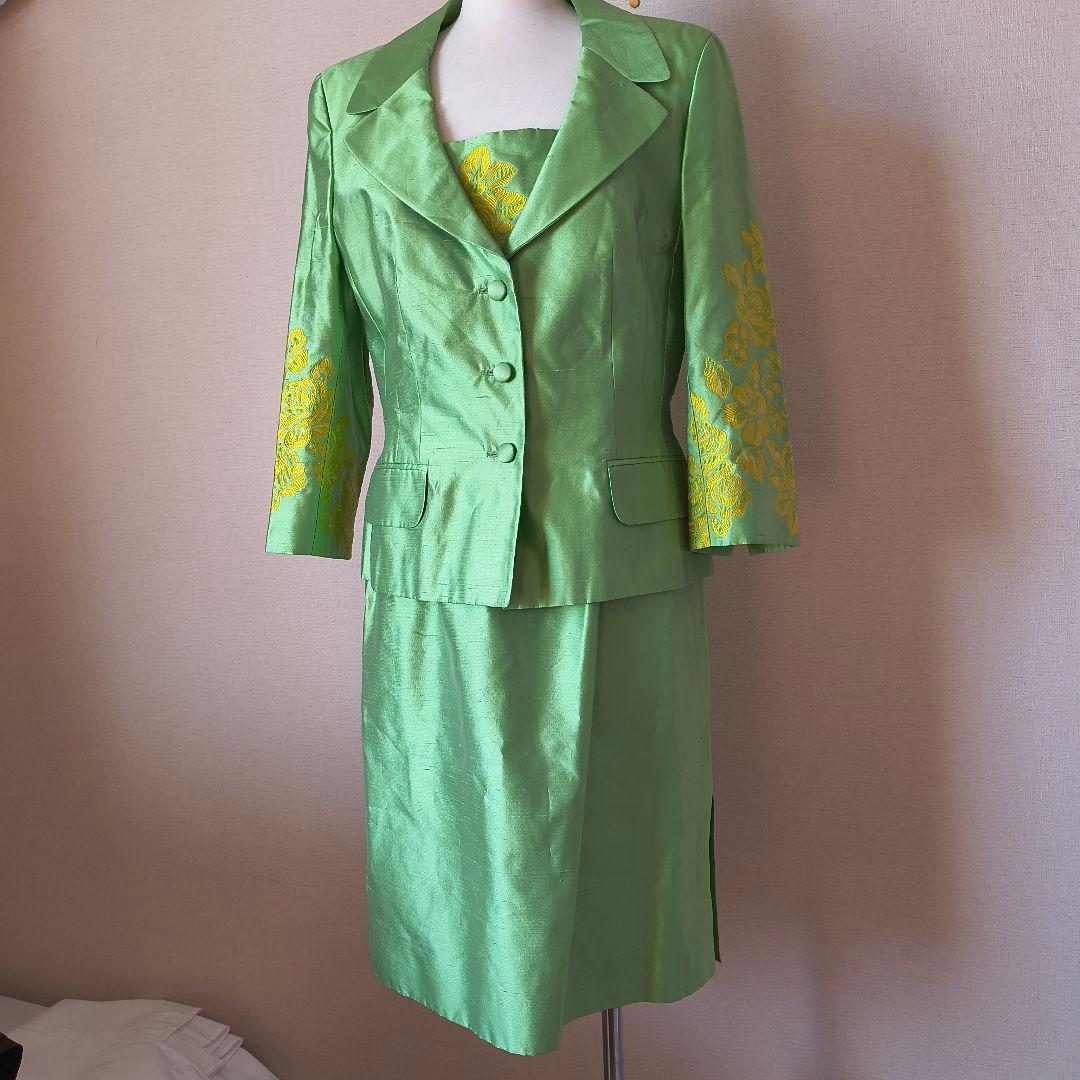 - デザイン: 刺繍入りジャケットとワンピースのセットアップ