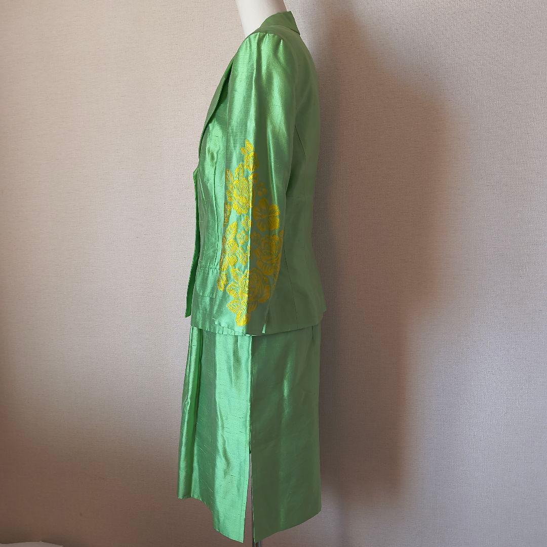 花柄のライトグリーンセットアップ、フォーマルシーンに最適。