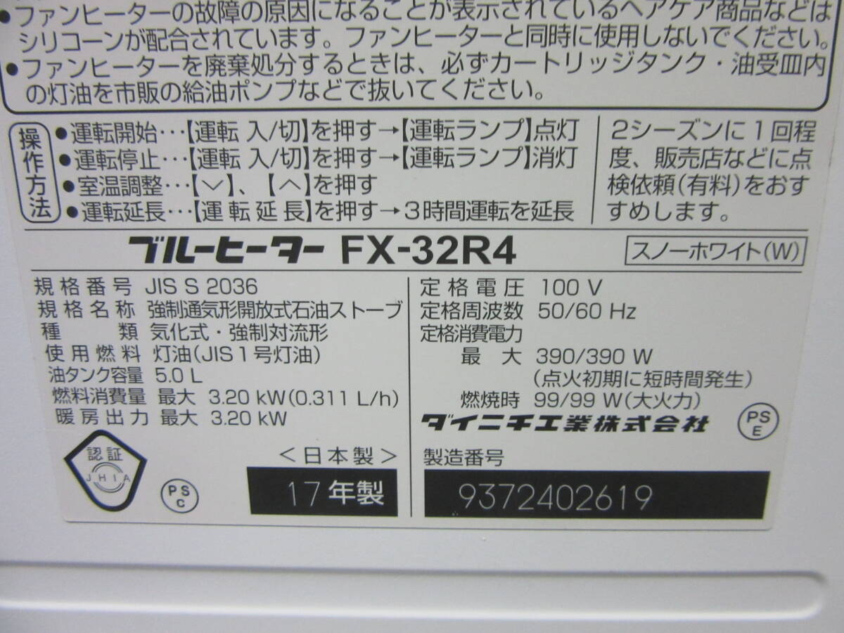 ダイニチファンヒーターFX-32R4 17年製の出品です。