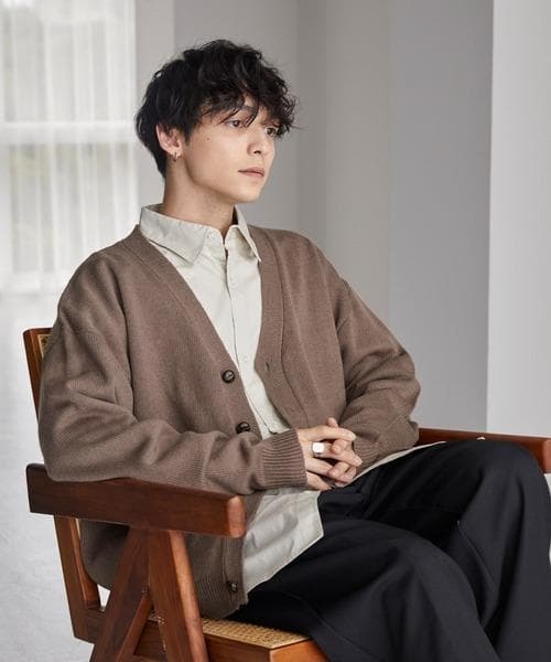 MONO-MART モノマート カーディガン ボリュームニットルーズカーディガン L モカ ビッグシルエット メンズ レディース 59543908