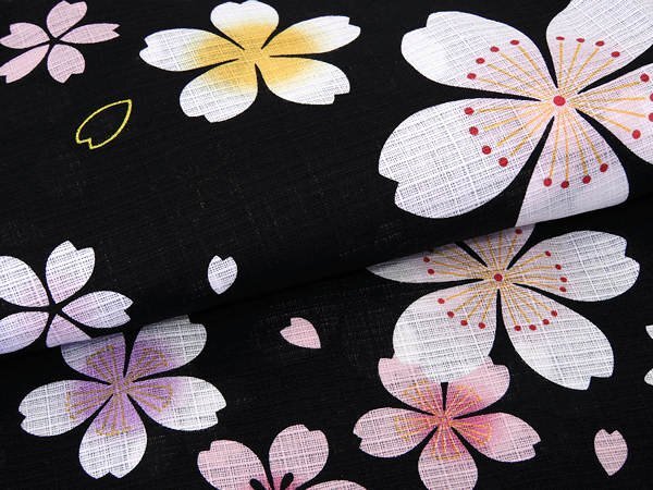 ★着物美人 ★ 女の子浴衣 変り織り 11歳 12歳 140前後 黒 桜 605412 ★新品★