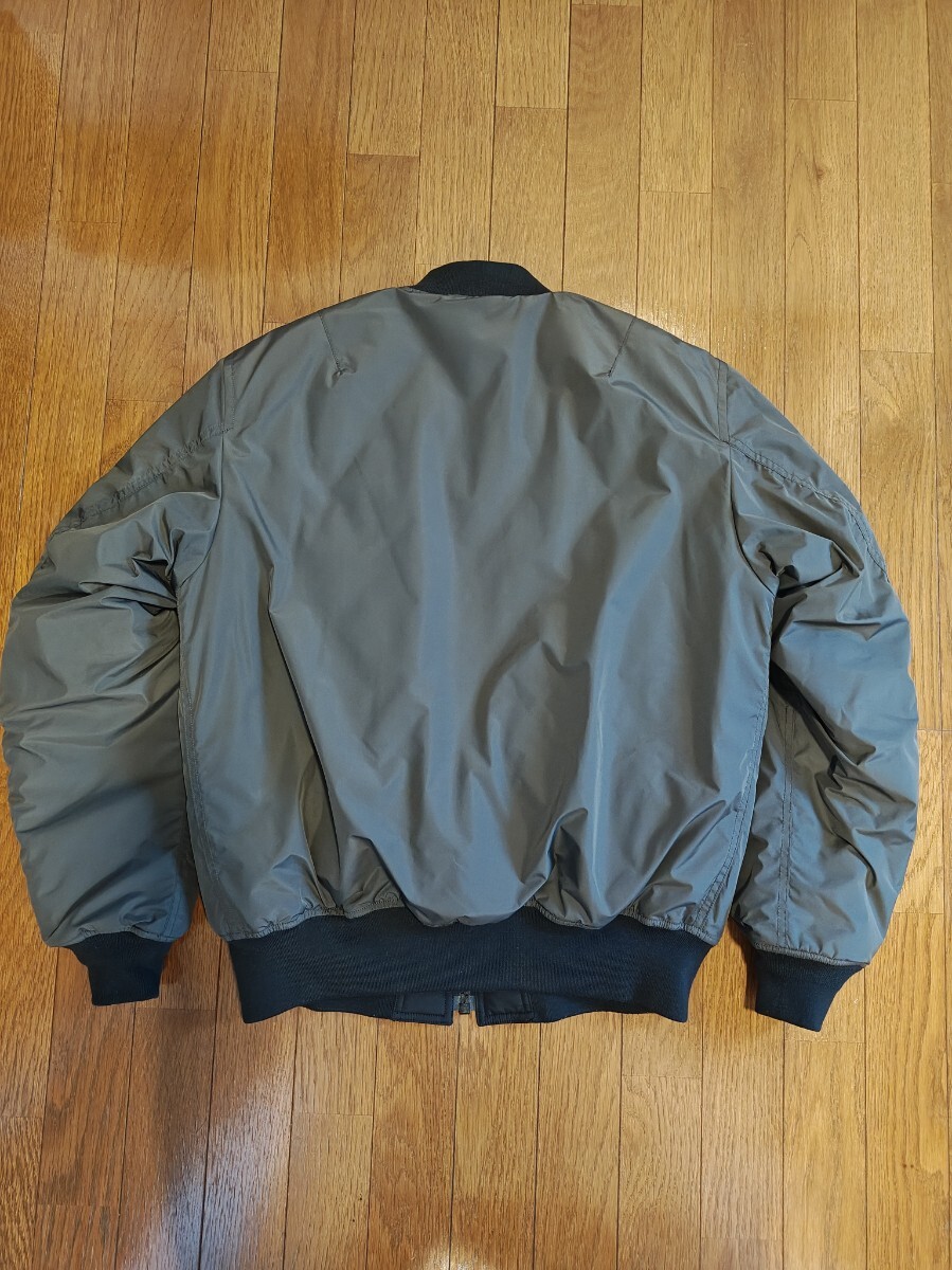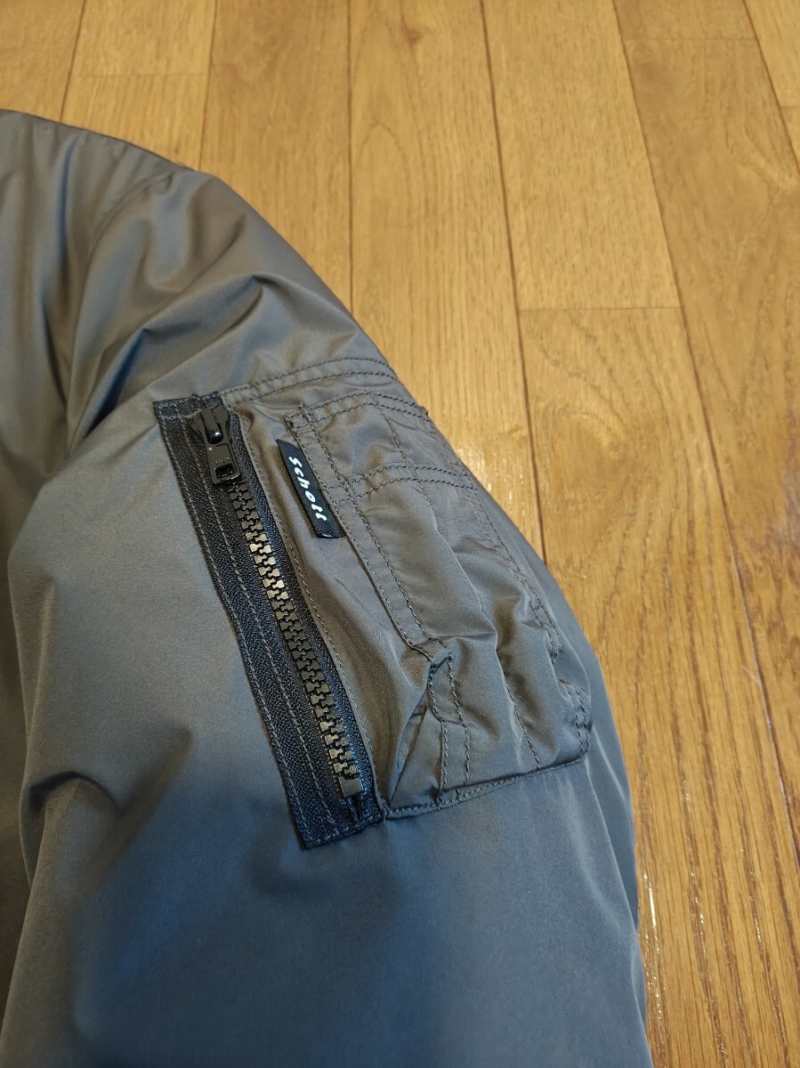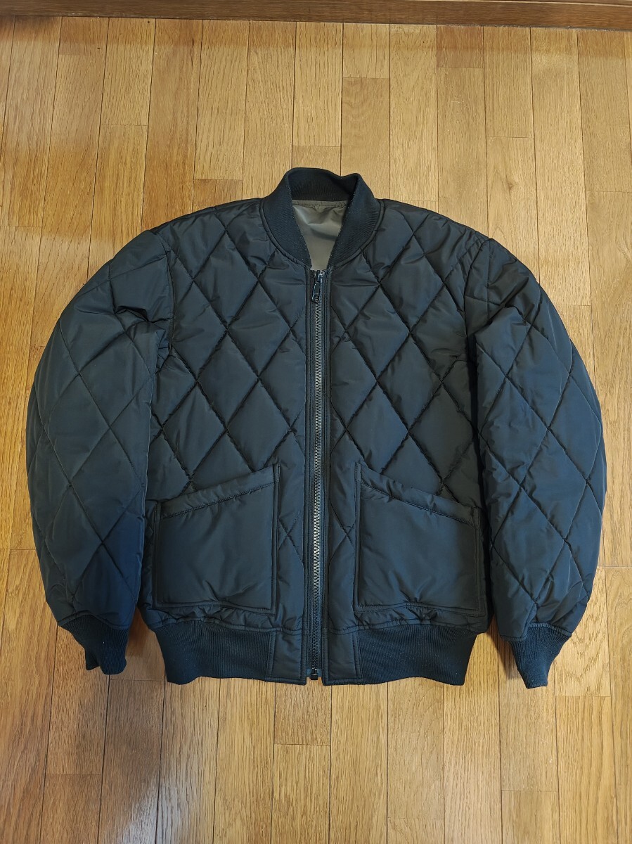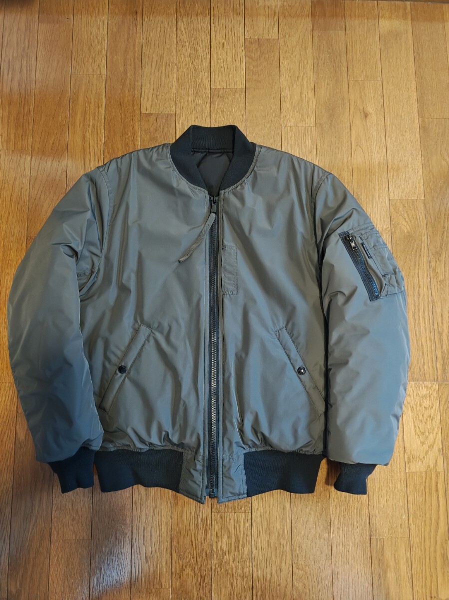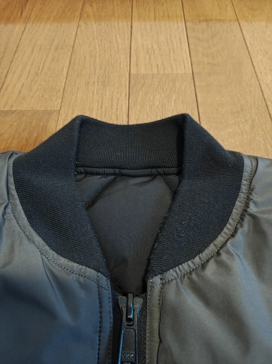 カラーはキルティング側がブラック、ma-1がグレーとカーキが混ざったカーキ寄りのアスファルト的な色です。