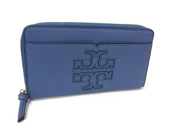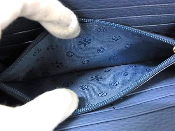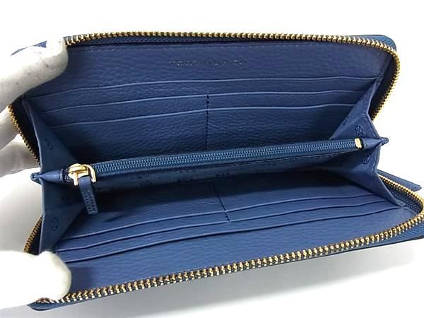 1円 ■美品■ TORY BURCH トリーバーチ レザー ラウンドファスナー 長財布 ウォレット 札入れ 小銭入れ レディース ブルー系 FP9041