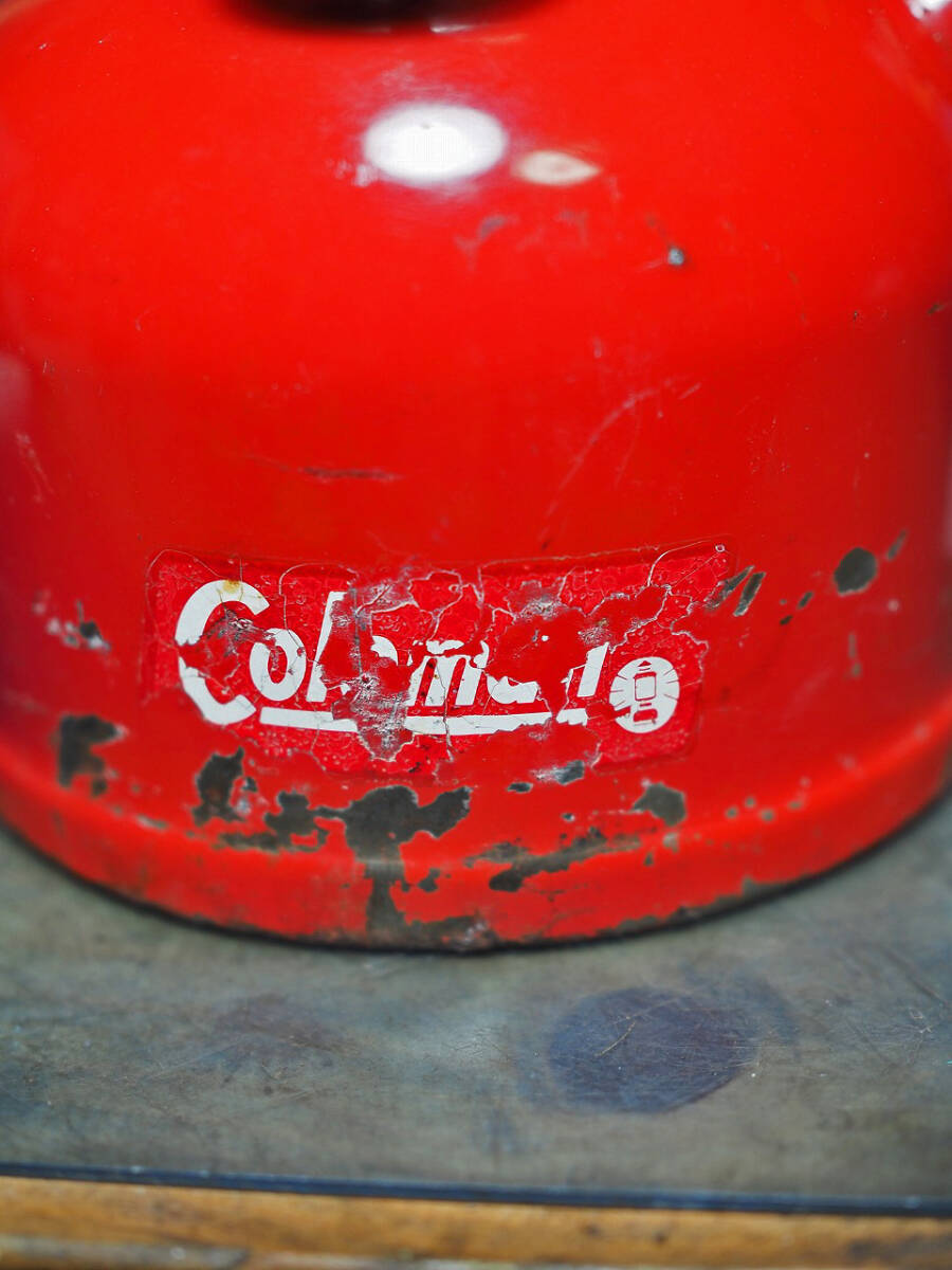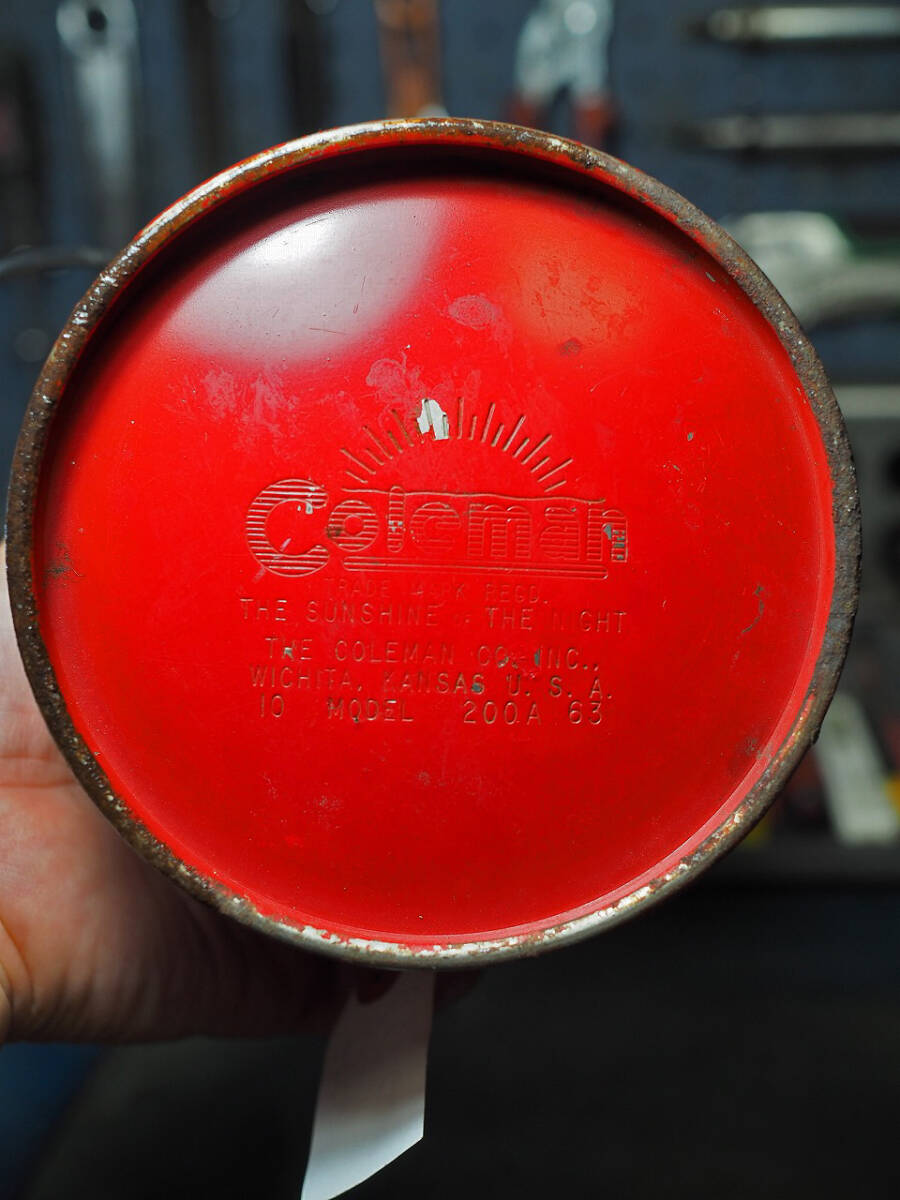 丸いグローブとまとまりのある可愛らしいデザインで人気ですが、デカールの周囲が赤いラインになっている200Aをレッドボーダーと呼び、名機コールマン200Aの初期型ハイベンチレーションからローベンチレーションへ移行する時期に当たり様々なバリエーションのある時期でもあります。