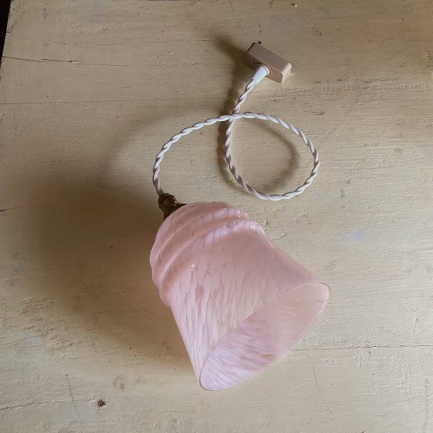イギリスアンティーク さくら色のガラスシェード【43-466C】マーブルガラス 天井照明 コード色変更可能! 店舗照明 玄関照明