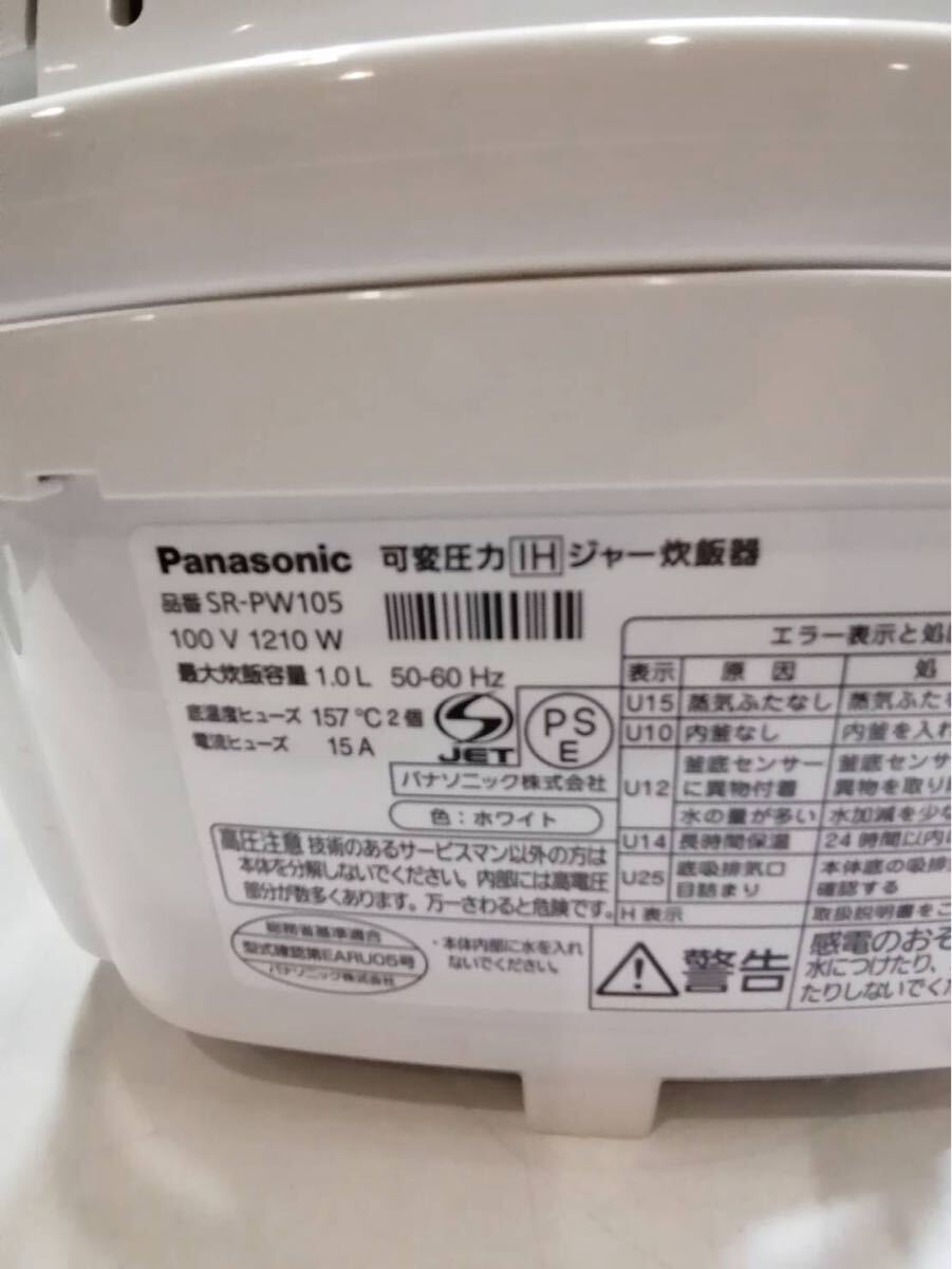 43【2015年製】Panasonic パナソニック 可変圧力IHジャー炊飯器 おどり炊き SR-PW105 炊飯量 5.5合 圧力IH炊飯器ダイヤモンド竃釜 あ